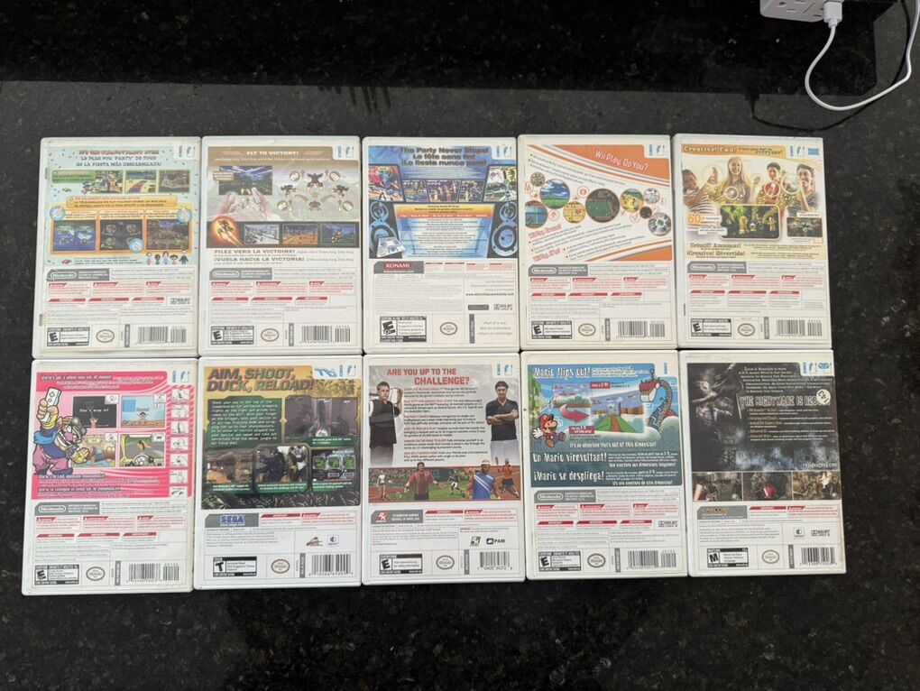 Mario Party 8: (sold) Donkey Kong Barrel Blast: (sold) Wii Play: (sold) Wii Music: $8 Top Spin 3: $6 Wario Ware Smooth Moves: $20 Resident Evil 4 (no manual): $12 Super Paper Mario (no manual): $15 DDR Hottest Party 2 (no manual): $7 Ghost Squad (no manual): $11