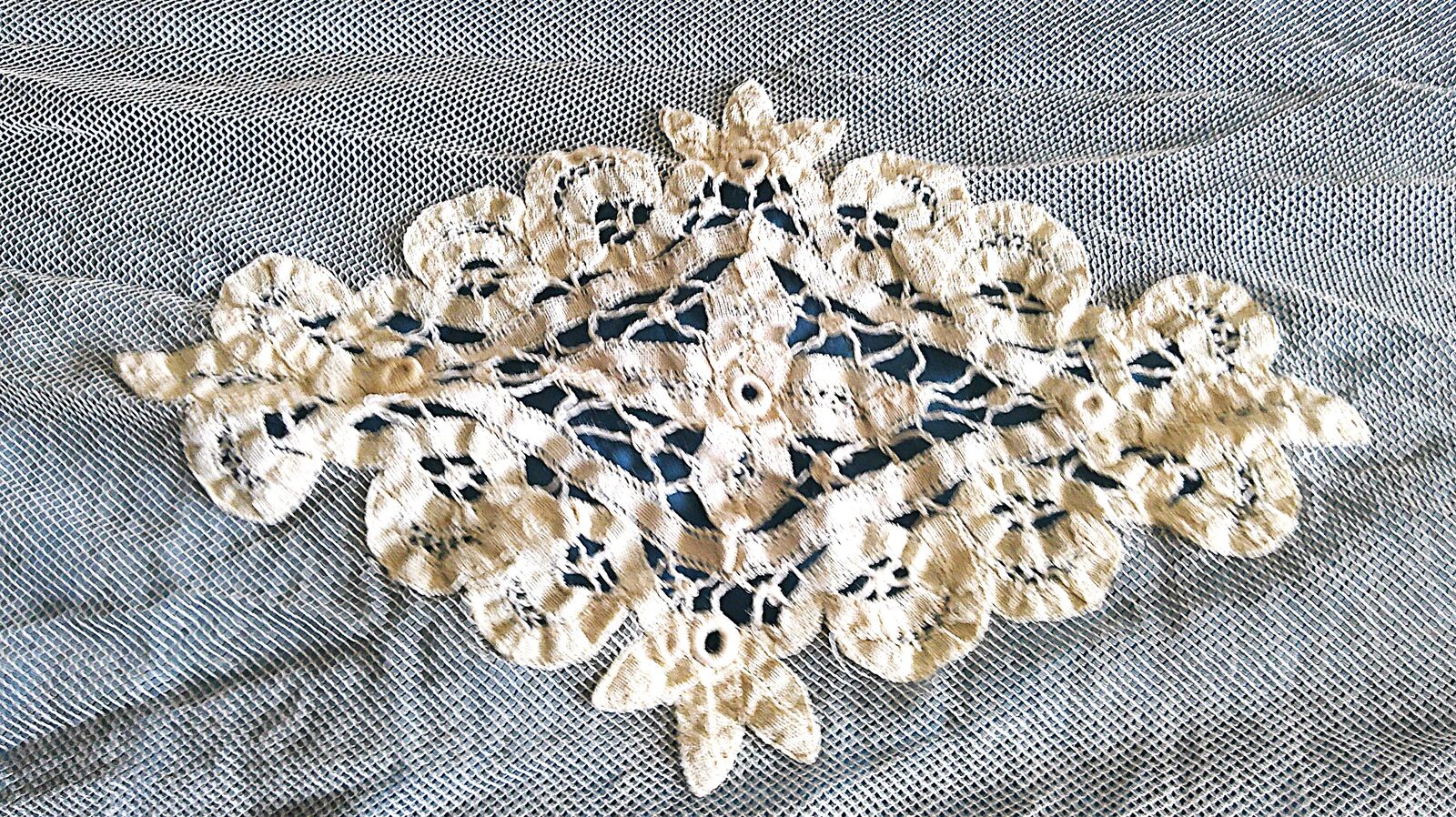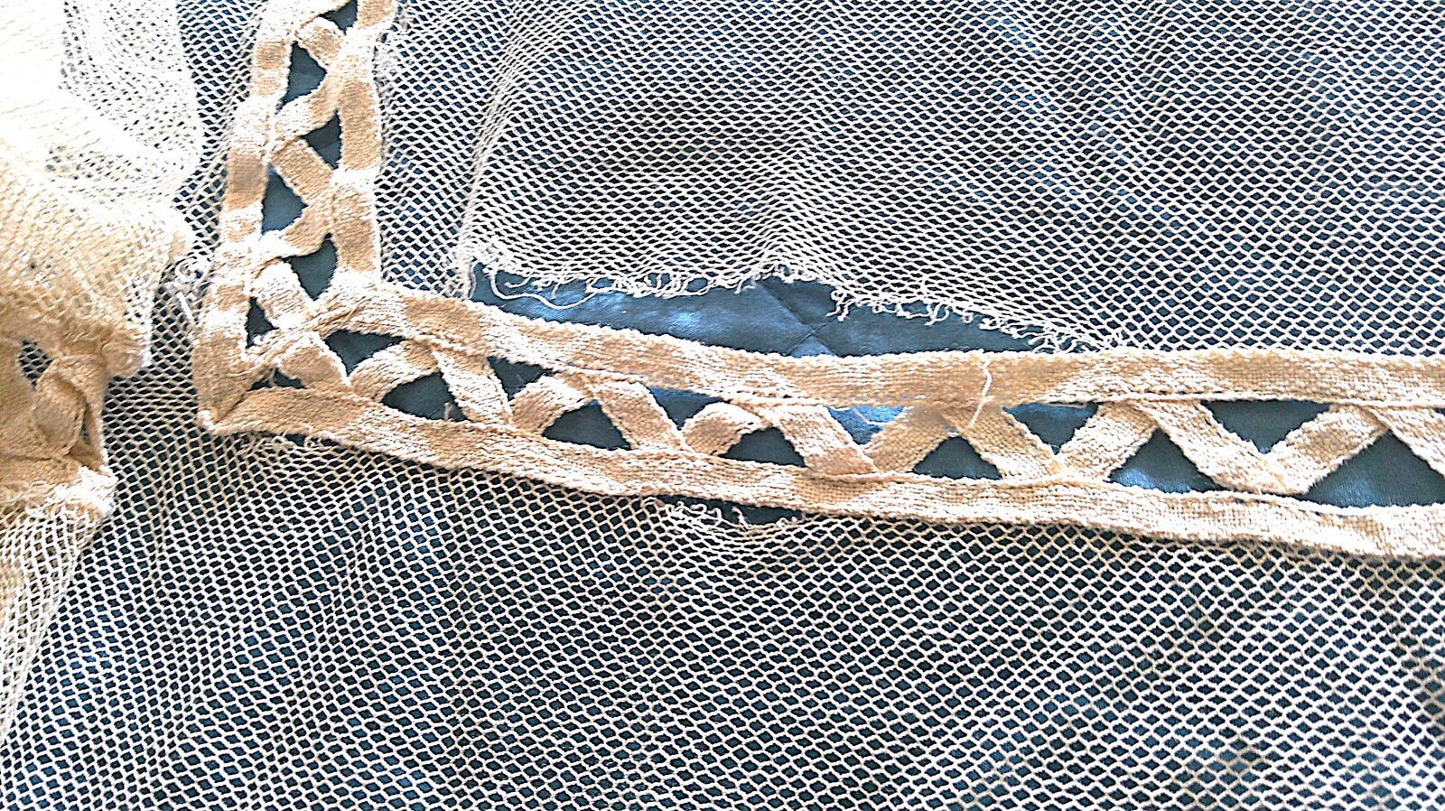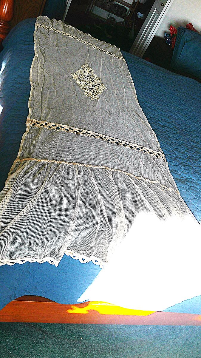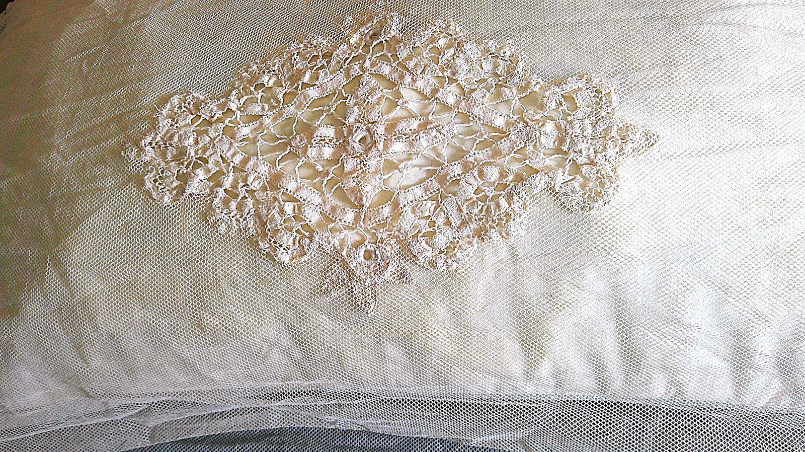 Vintage net coverlet just out of storage. See photos for condition. Has two minor easily repaired openings. Double bed size. Located in South Jordan.