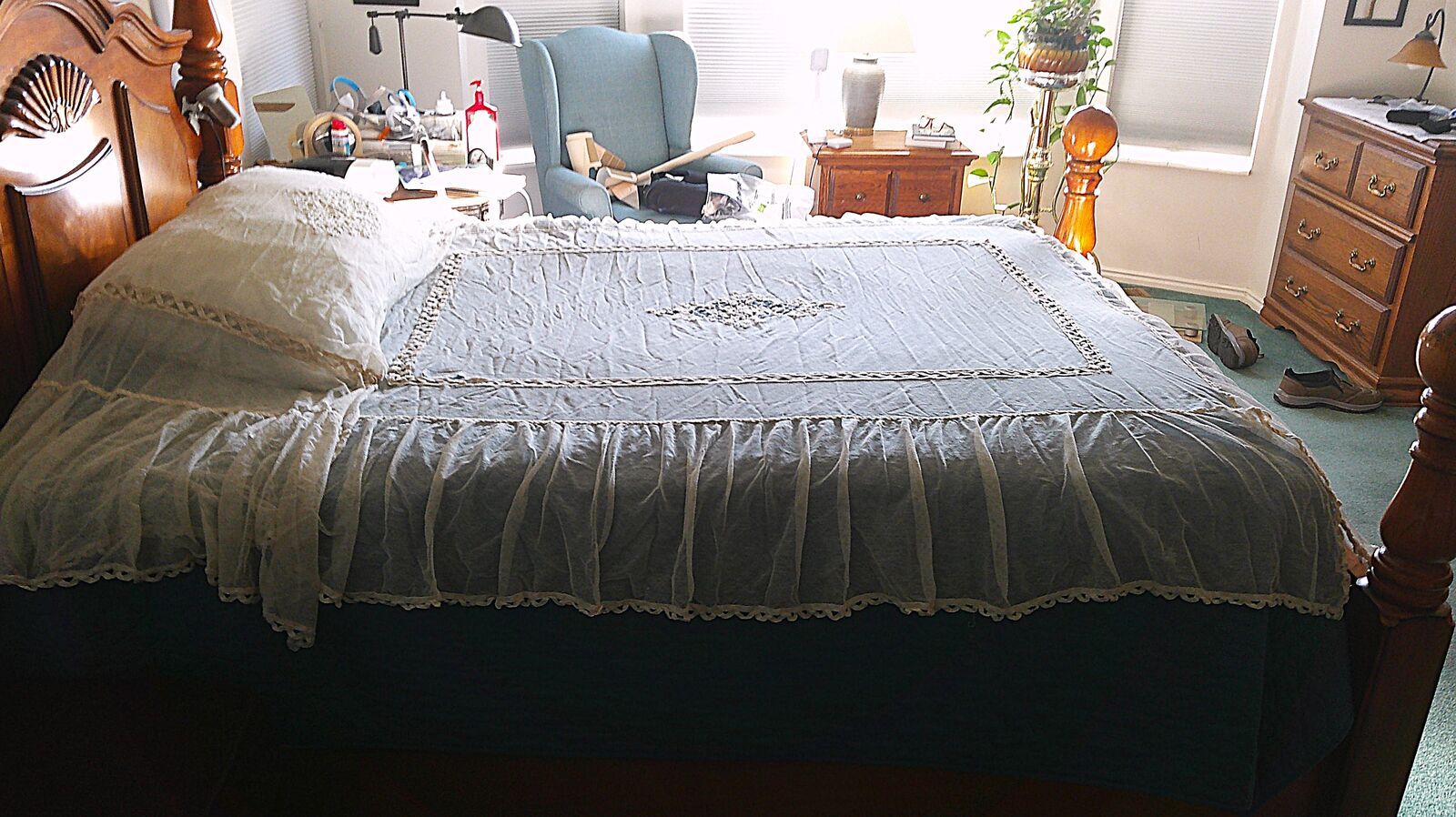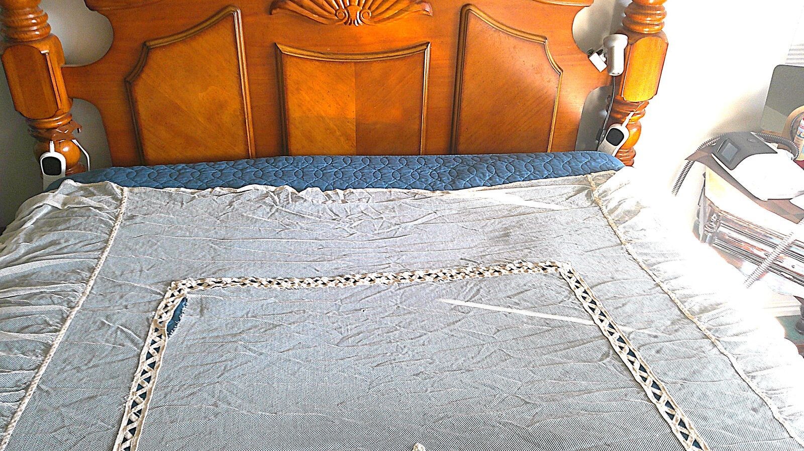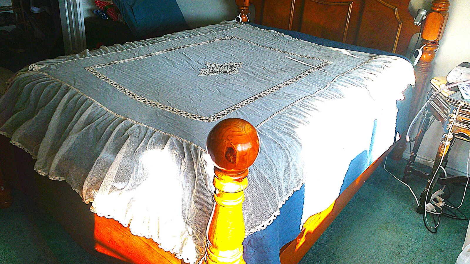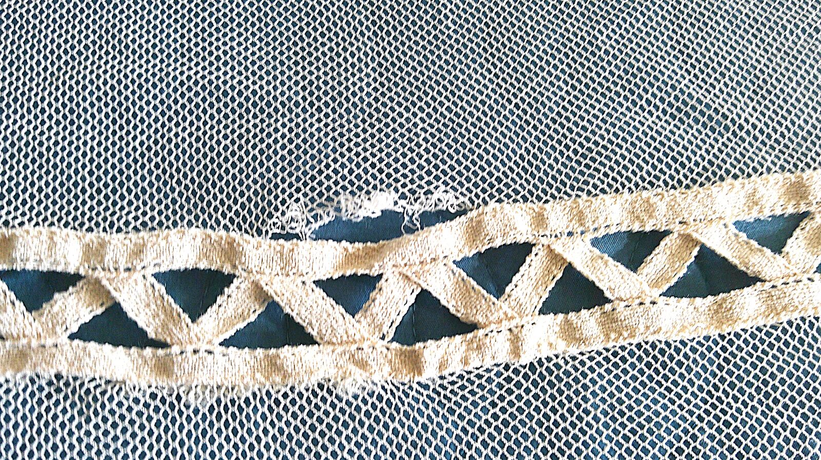 Vintage net coverlet just out of storage. See photos for condition. Has two minor easily repaired openings. Double bed size. Located in South Jordan.