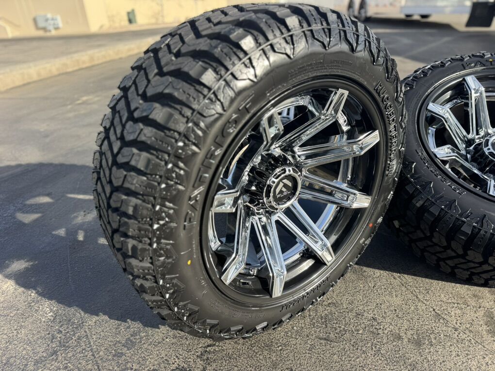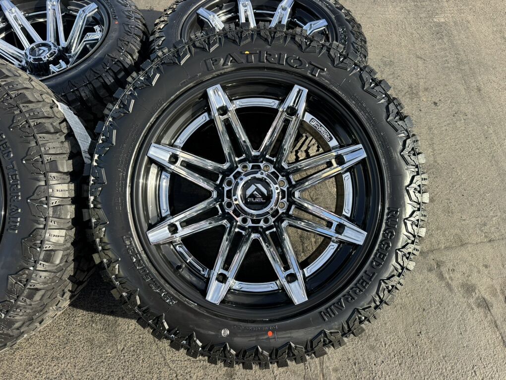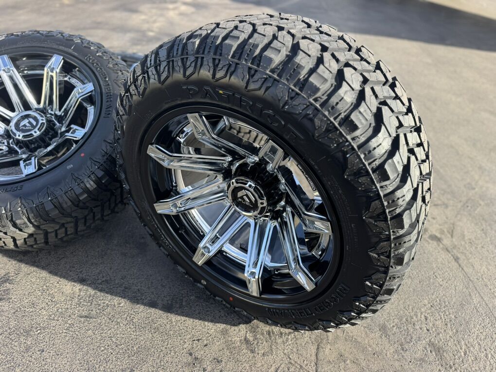 ApplePayLocated in SLC Brand New 35x12.50r22 Patriot RT tires load F 12 ply. Mounted and balanced on brand new Fuel Brawl Fusion Forged FC401 wheels. 22x12 -44et offset. 8x170 bolt pattern these fit 1998 and newer Ford F-250 F-350 Superduty Powerstroke and Excursion. HUGE savings these wheels retail $750 a piece plus tires!
