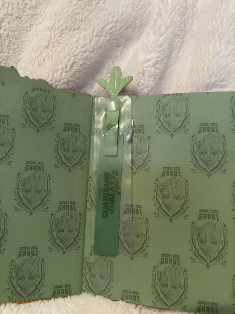 VenmoGroot journal book with cute bookmarker bought in California adventures land after the guardians of the galaxy ride. Brand new with a very cute look and fun texture like a tree immitation.