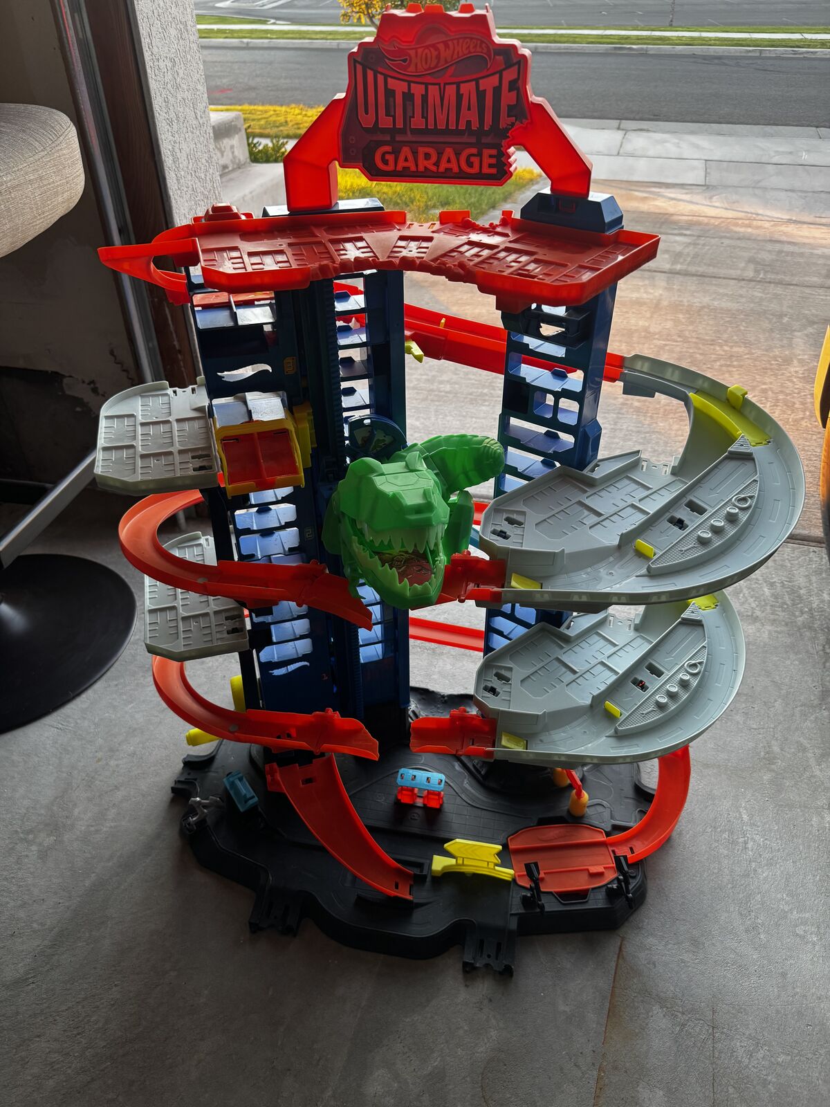 Very cool toy that's built to house many hot wheel cars. The T-Rex slides down as the cars race down the track to try to gobble up the cars during the jumps. My kids no longer play with it so I'm selling It for some extra cash. feel free to text with any questions. Cash only please.
