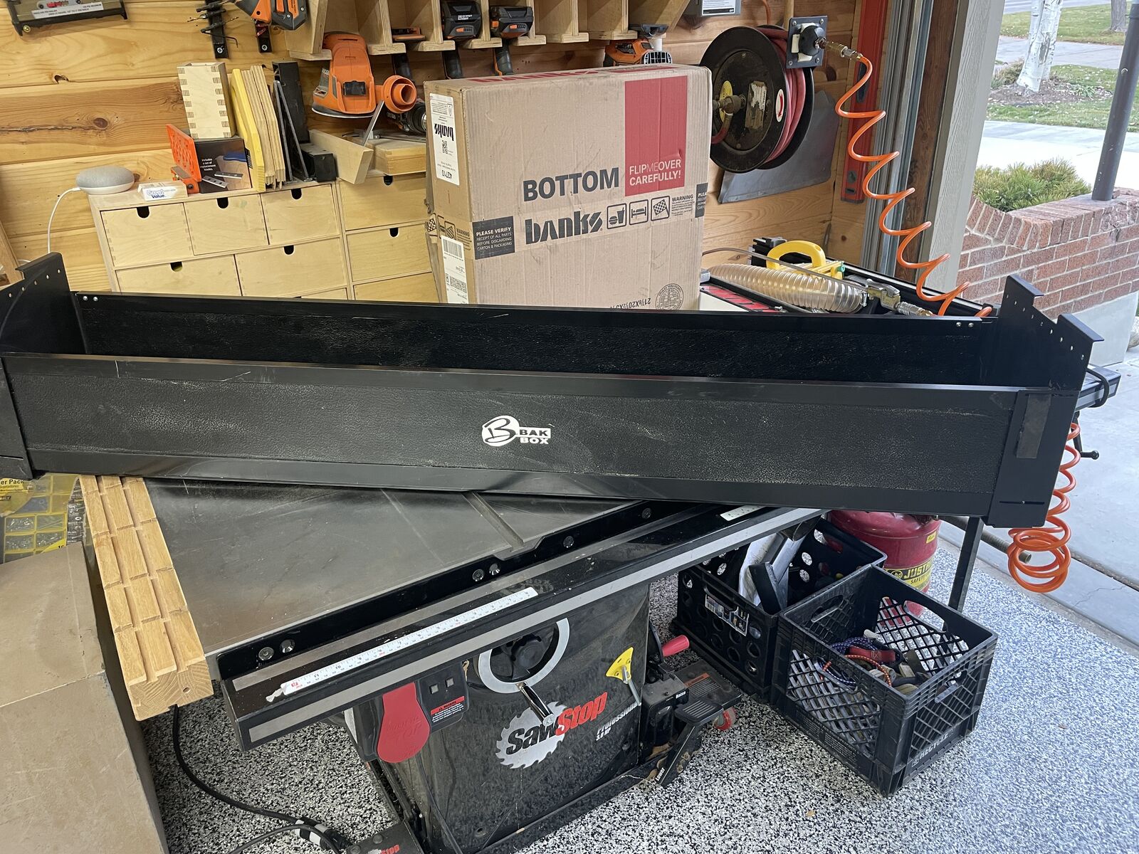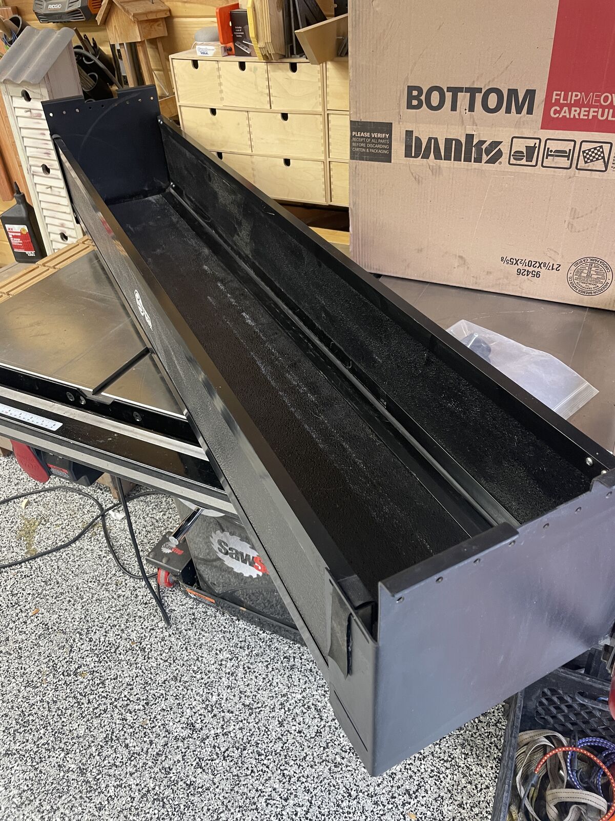 Great used tool box that mounts under a Bakflip brand tonneau cover. This tool box folds up so it is out of the way for large loads and is out of the way and out of sight when in use. I grabbed a couple pics off the internet so you can see how it is used because mine is out of the truck as you can see in the other pics. The cheapest one I could find on the internet currently for sale was at etrailer for $379.00. Mine is used of course so I'm asking a lot less than that.