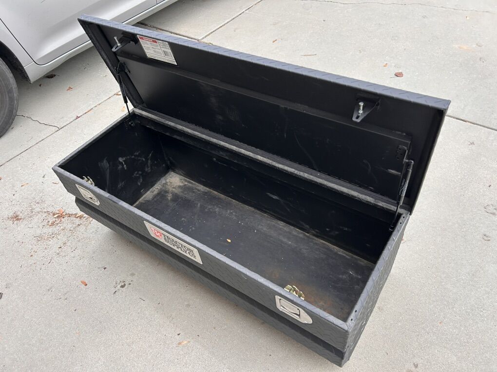 VenmoLow profile Tractor Supply locking toolbox, fits fully inside the bed of a Tacoma in case you need to use a tonneau cover. 170 bucks OBO