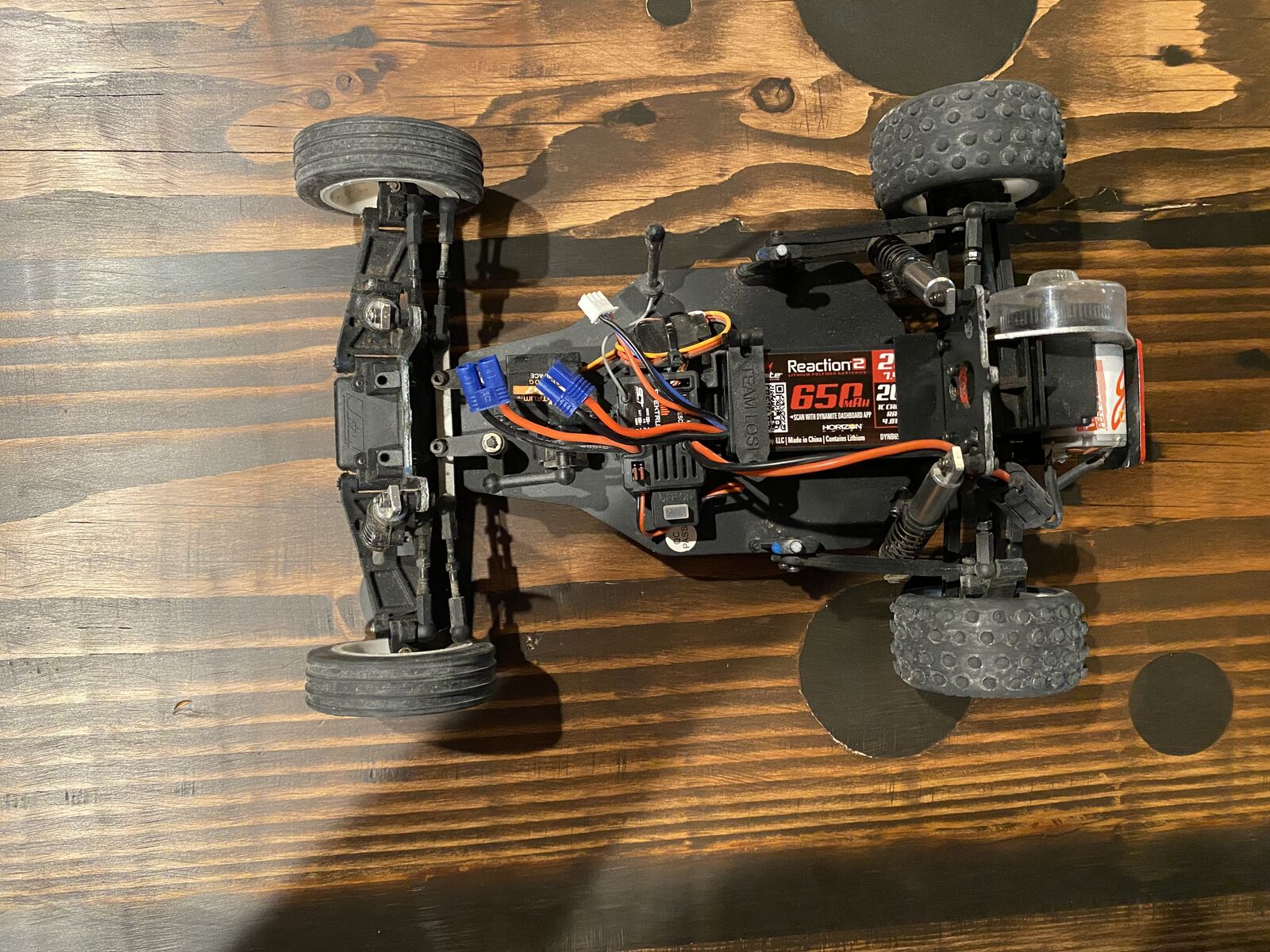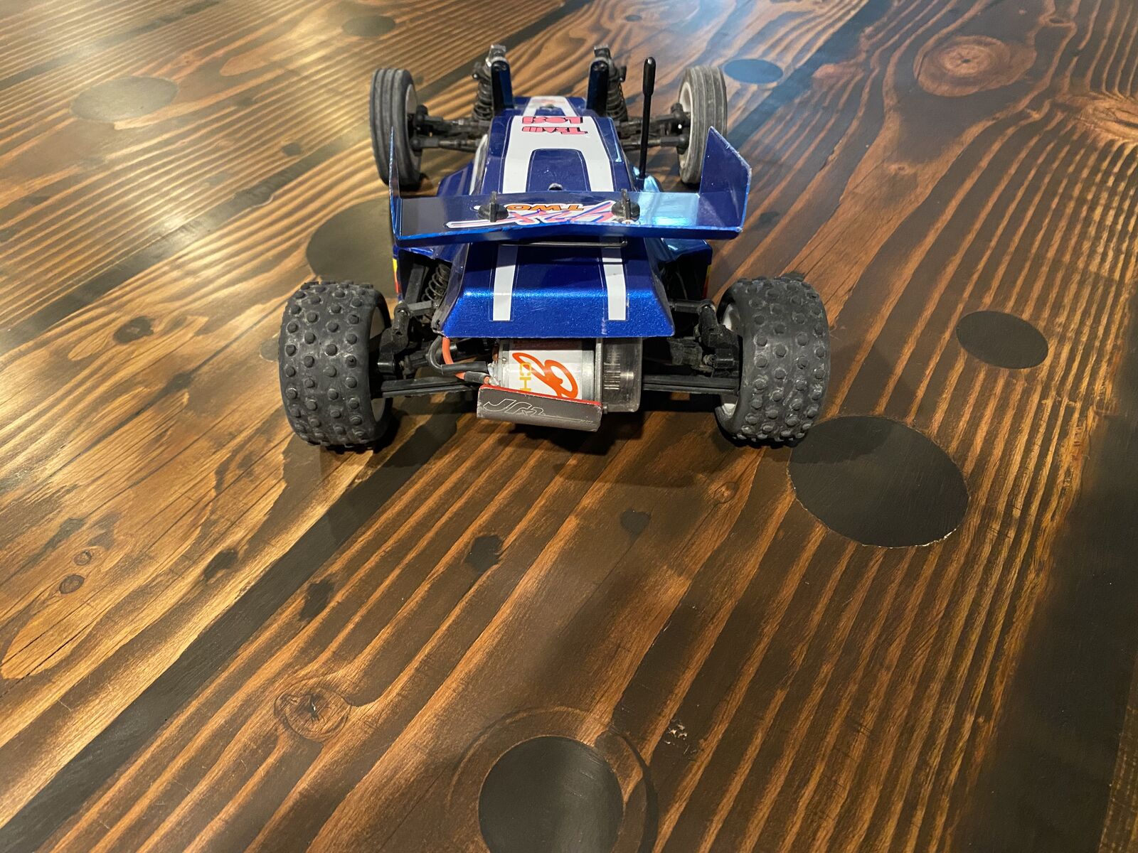 VenmoGreat little RC car. Has seen some abuse but functions great. Includes an aftermarket upgraded battery along with the original battery. Also includes spare pins and C clips. Top speed is around 16 MPH so it's no speed demon but a lot of fun on small tracks.