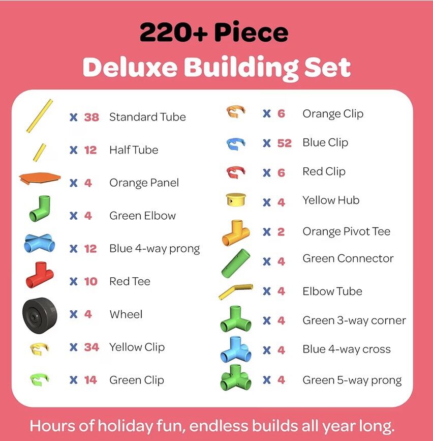 PayPalBrand New Tubelox STEM Building Toy Set - 220 Piece Life-Size Construction Kit for Kids | PVC Pipe Blocks for Forts, Towers & Creative Engineering Play | Durable Indoor/Outdoor STEM Toy | Ages 3+