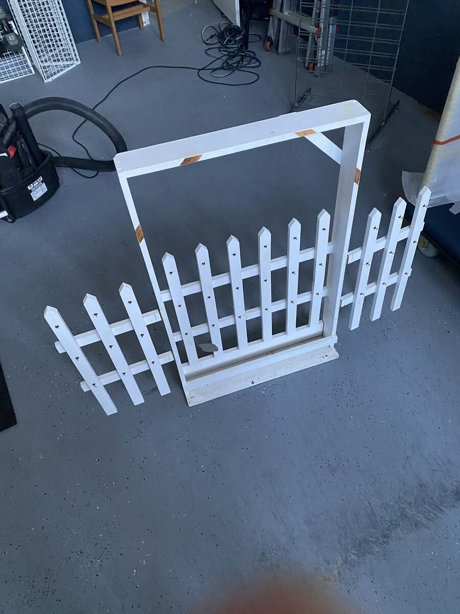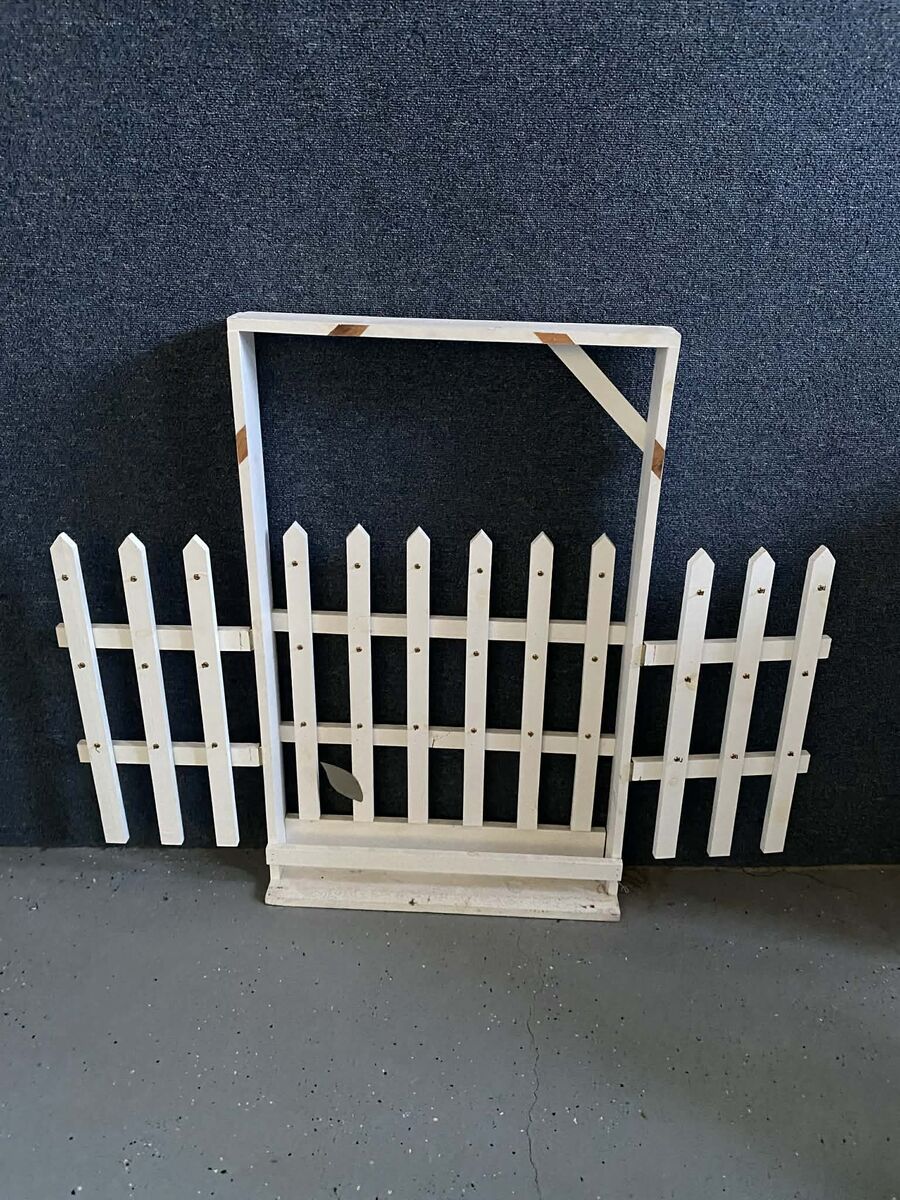 VenmoWhite fence/ It was used to hange lasting impression templates on, but can be used for other things. It is as tall as my waste.