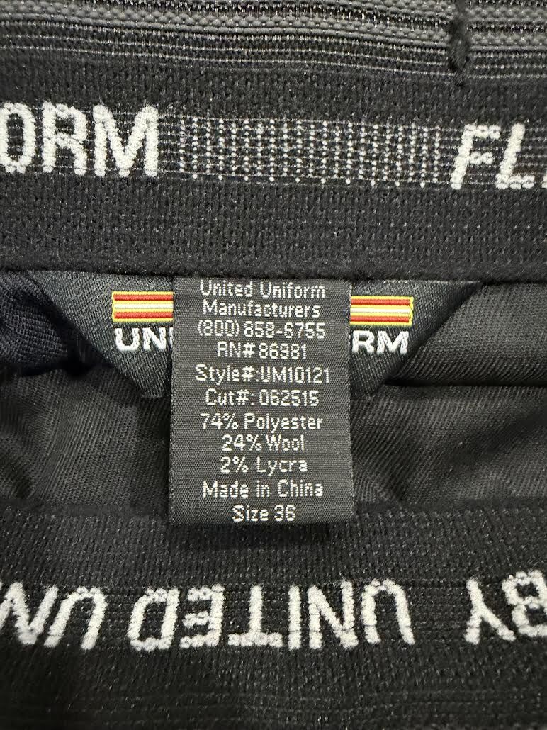 VenmoDark navy blue Class A police pant. Size 36 with 2" extra hem. Clean. Four (4) pocket with two (2) interior zipper pockets. United Uniform with 2-inch waistband with Flexgrip retention system and Ban-roll. Triangle bartacks at stress points. Machine washable. Comfort fit. Serge weave. See photo for materials. Used once for LEO graduation. Saratoga Springs. Cash or Venmo upon pickup.