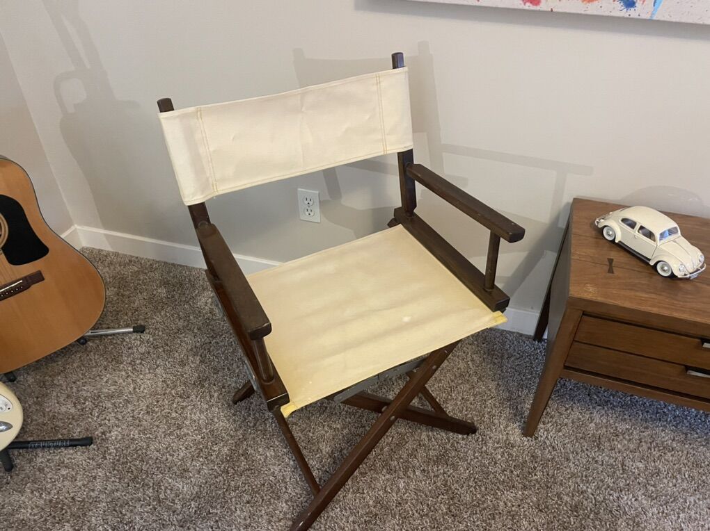 Classic American design with real history. This matching pair of Commander chairs, made in Tennessee, features solid hardwood frames with durable canvas sling seats and backs. Clean lines, sturdy construction, and timeless mid-century style.