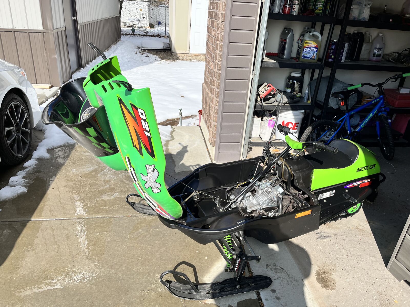 Venmo2001 Z120 that has been upgraded to a 212 motor, Rec motor sports sprockets, chain, clutch, and custom exhaust and hand warmers.