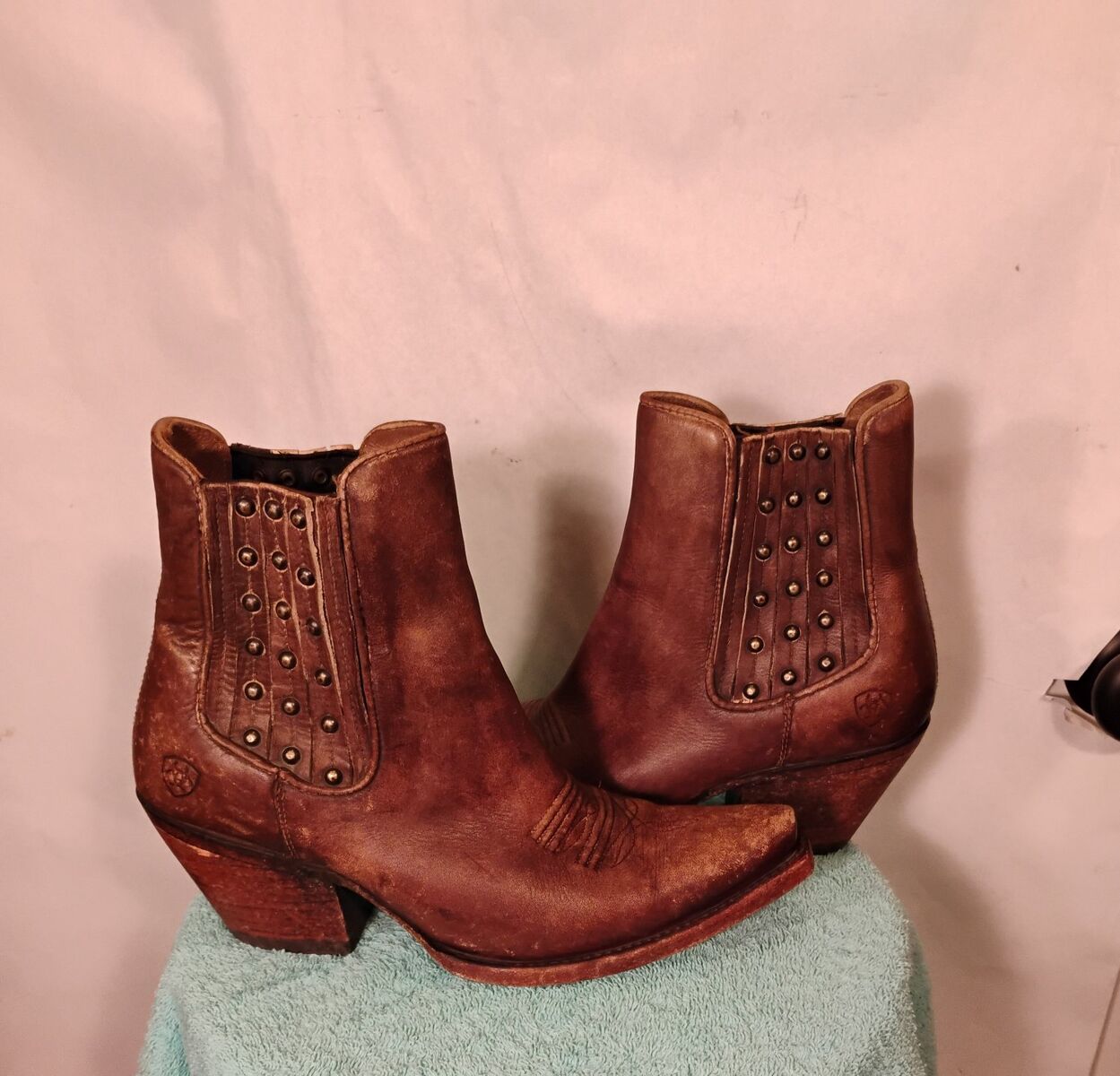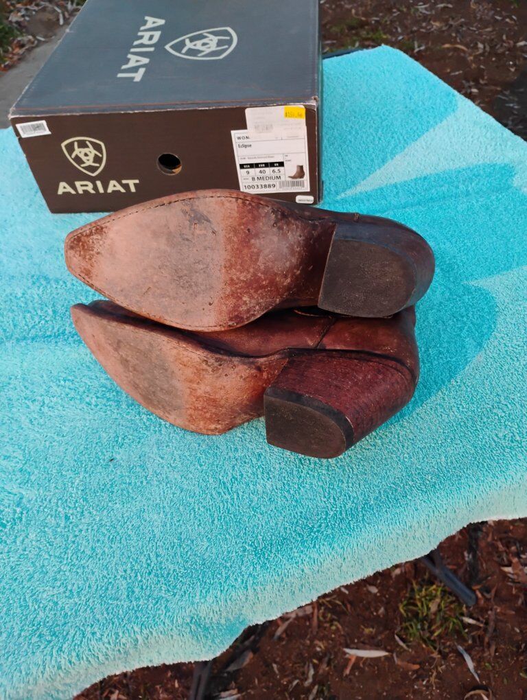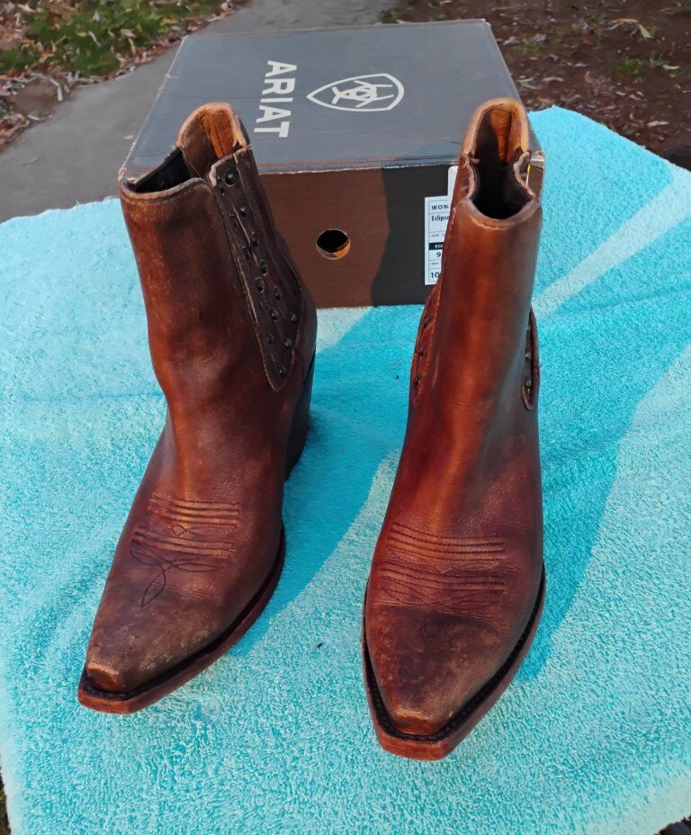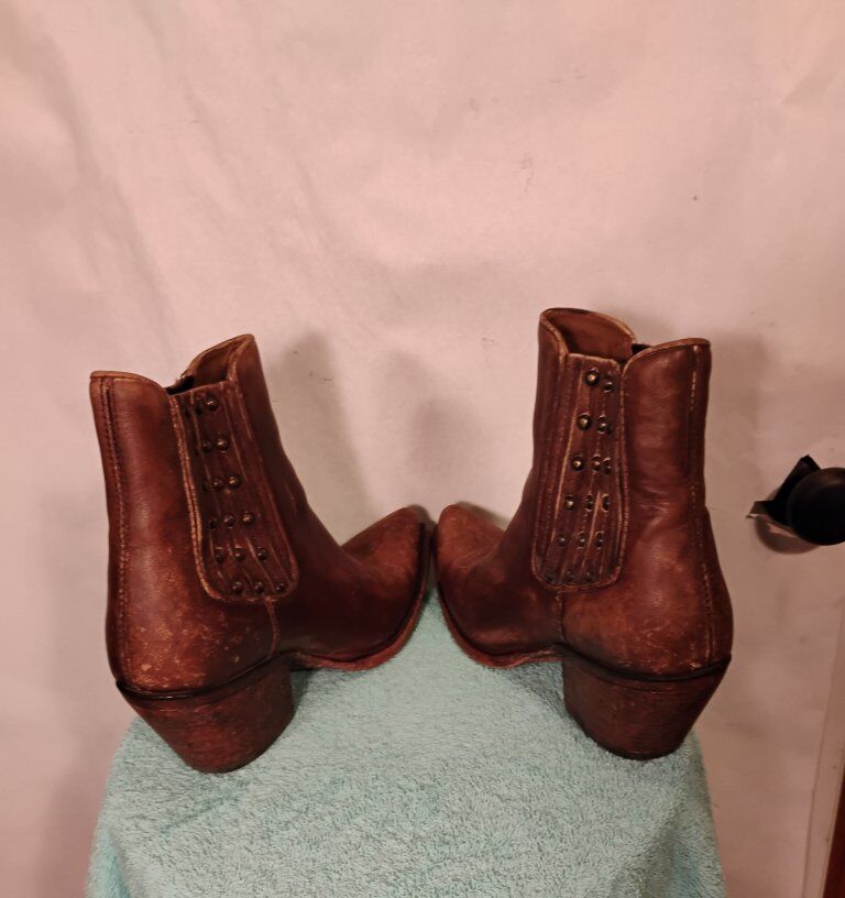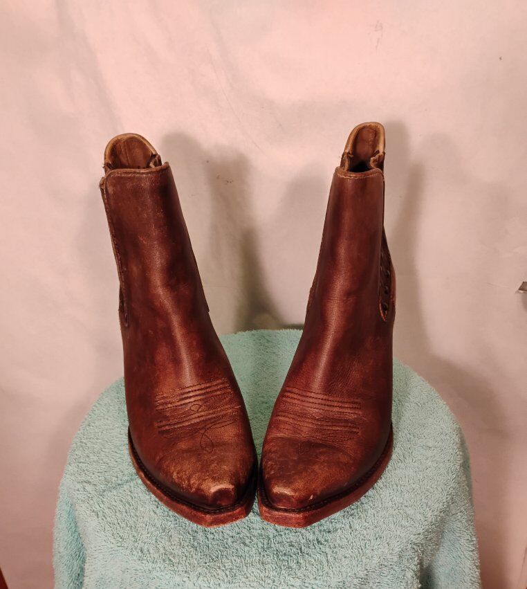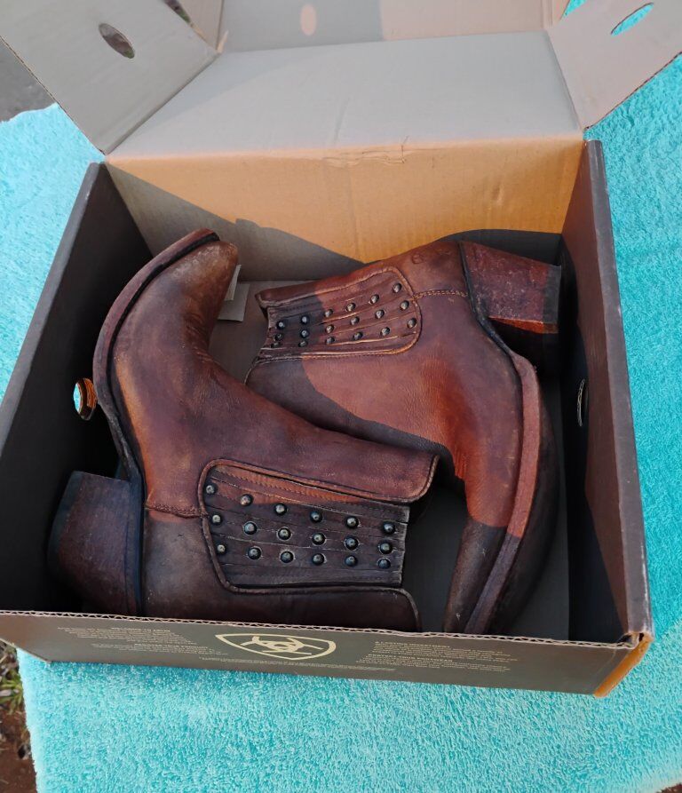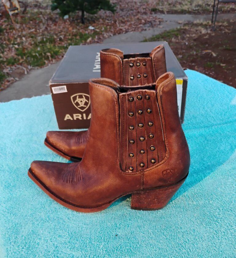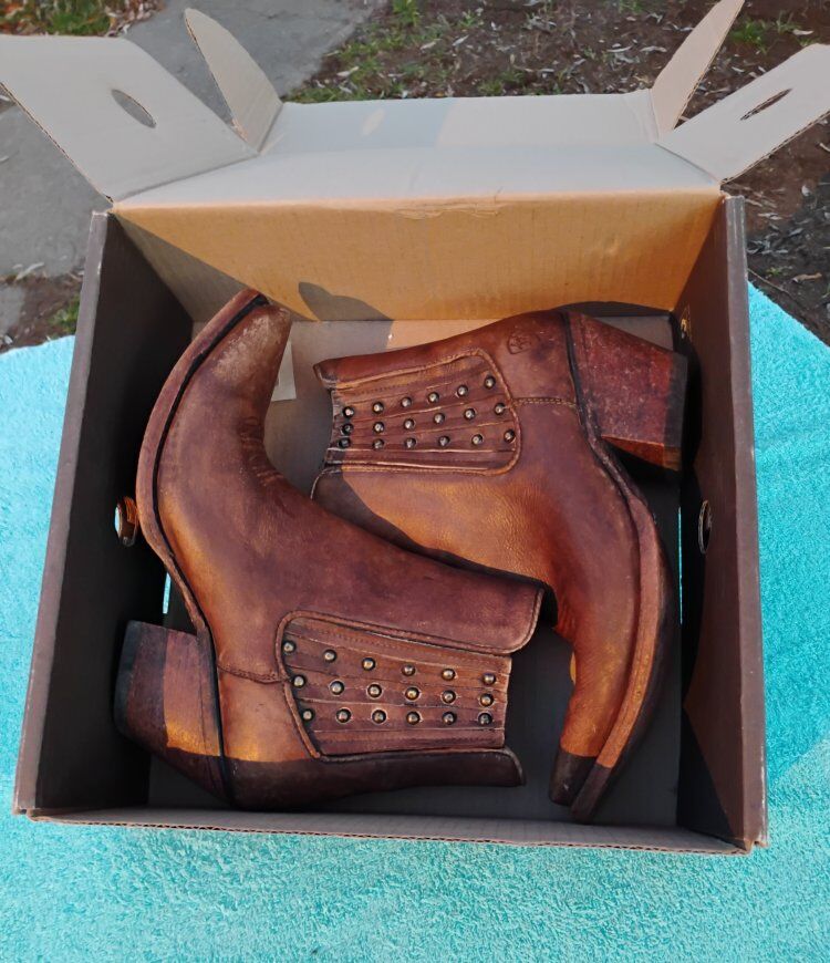 VenmoCute pair of boots with western stitching. Ladies Ankle Boots. Size 9B. New or near new condition. In some of the pictures they look a little red. they are brown.