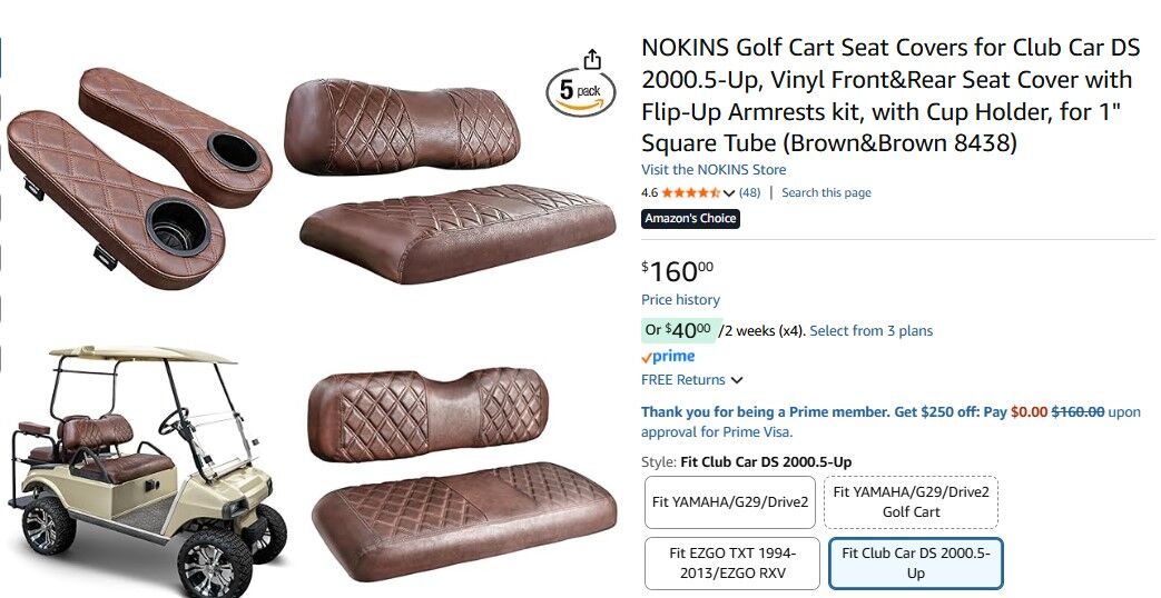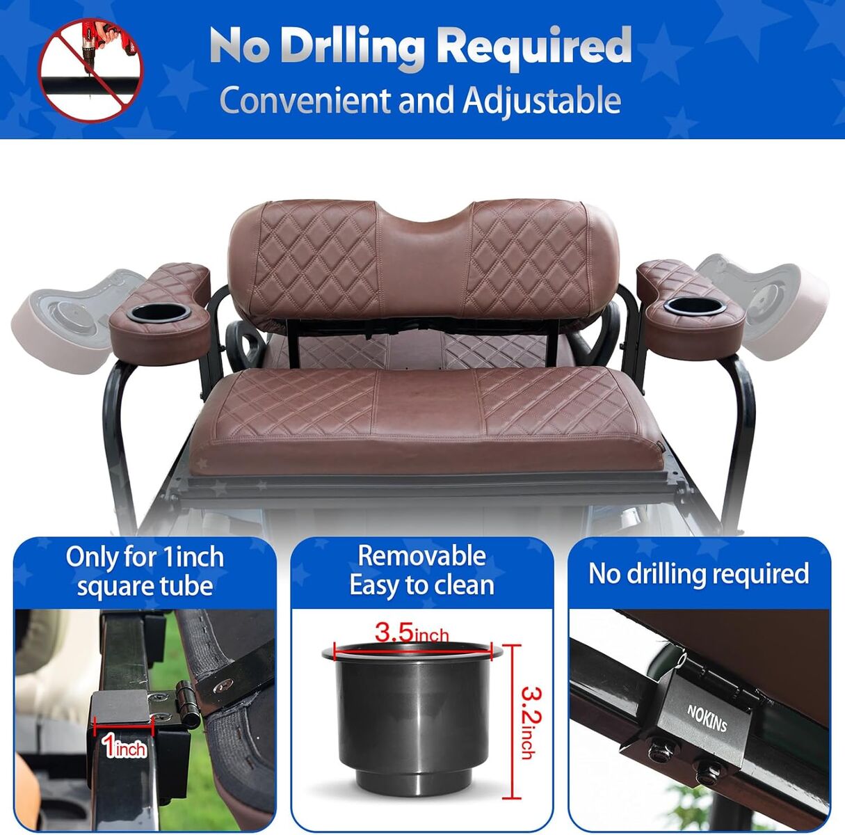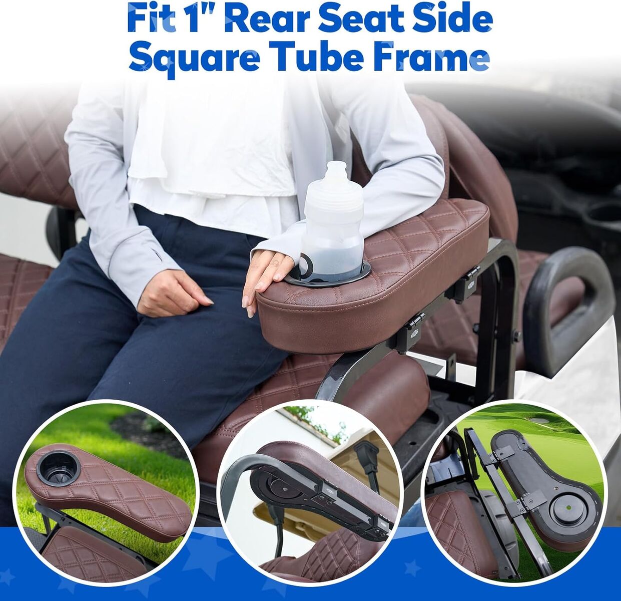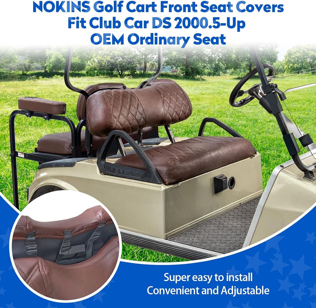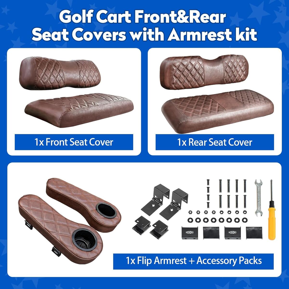 ApplePay5NOKINS Golf Cart Seat Covers for Club Car DS 2000.5-Up, Vinyl Front&Rear Seat Cover with Flip-Up Armrests kit, with Cup Holder, for 1" Square Tube (Brown&Brown 8438)