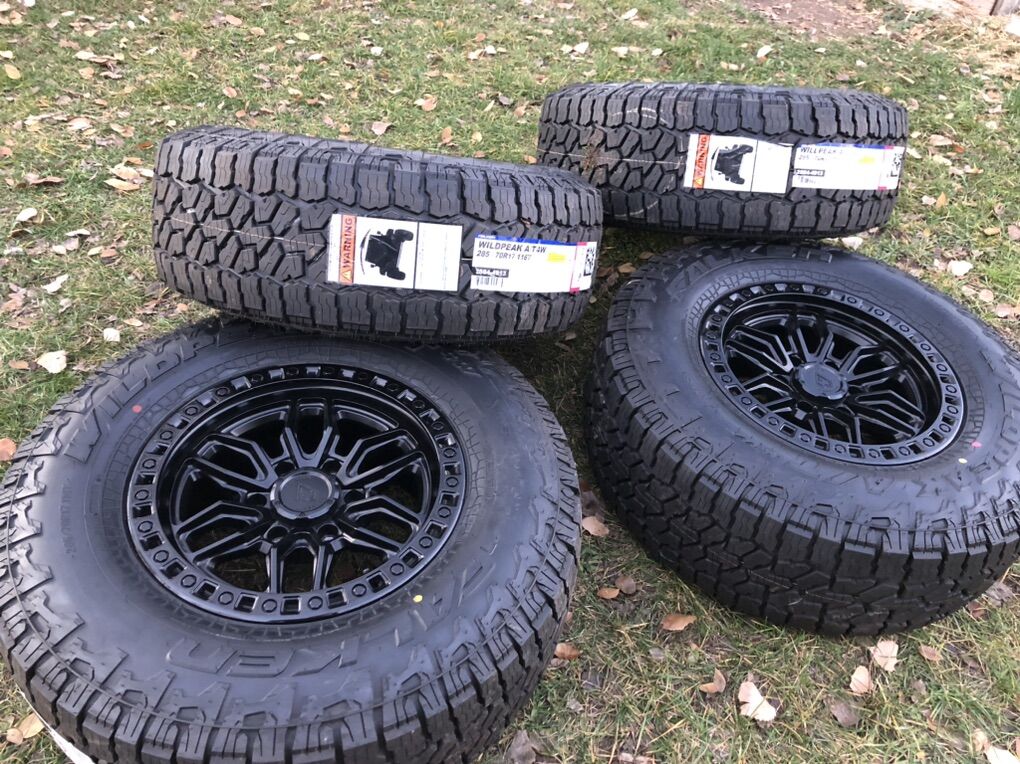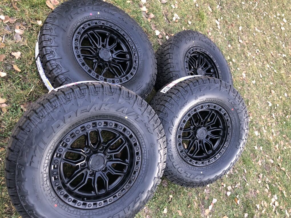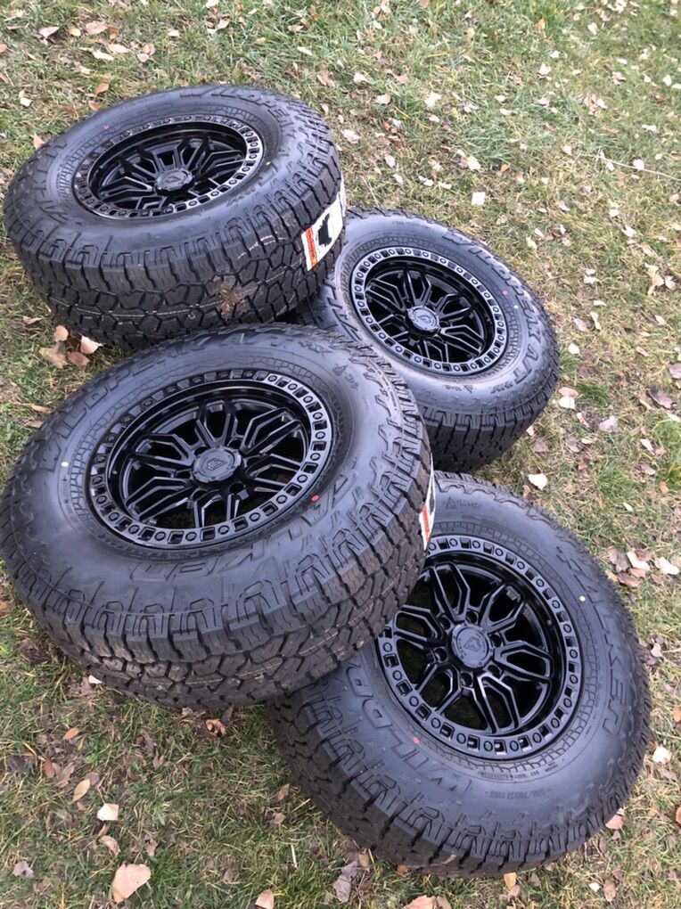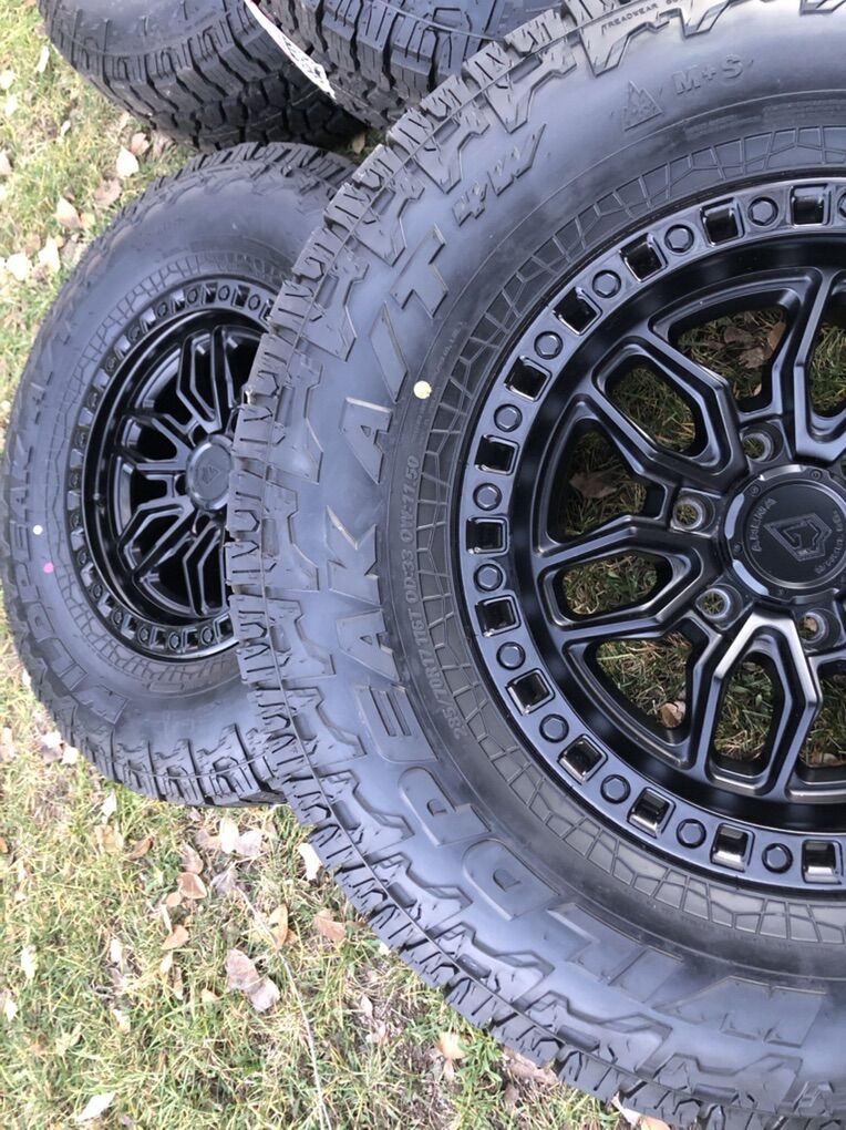 VenmoBrand new set of wheels and tires, already balanced and ready for trucks with a 6x139.7 bolt pattern (also known as 6x5.5), such as Toyota Tacomas, Tundras, 4Runners, Sequoias, Dodge Ram 1500s, Chevrolet Silverado 1500s, Suburbans, Tahoes, Colorados, GMC Sierra 1500s, Yukons, and some other models.