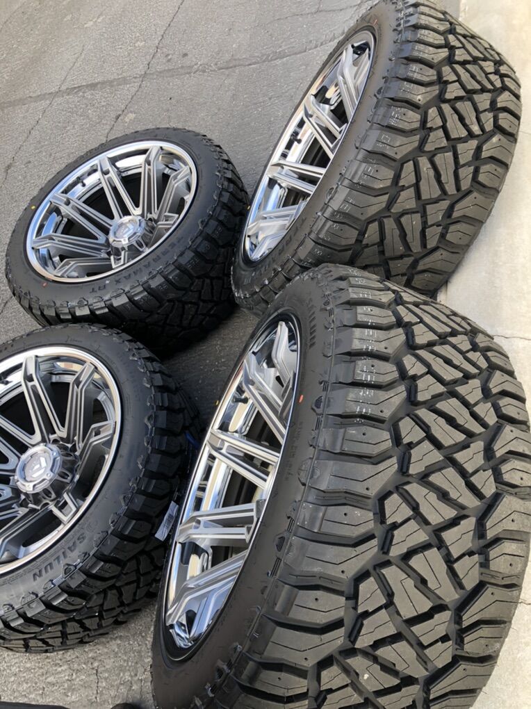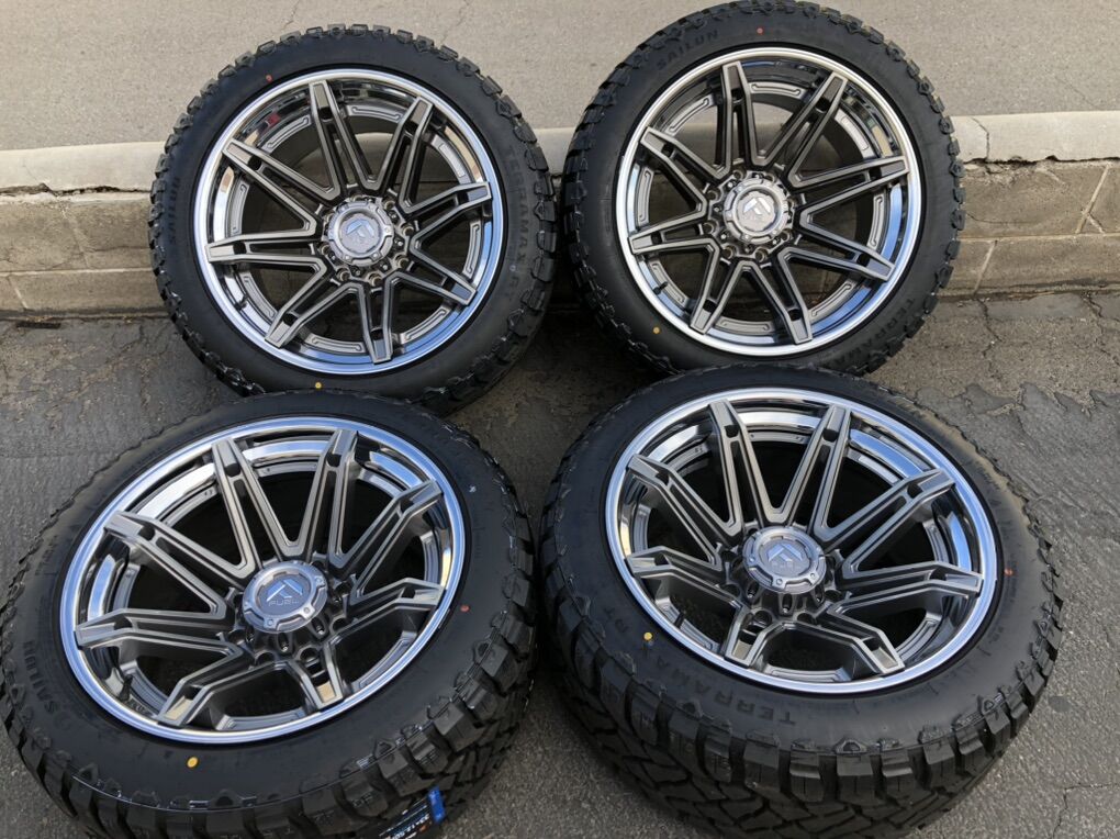 VenmoBrand new Fuel Forged wheels in Platinum W/Chrome Lip, featuring a -44mm offset, making them the ideal size for Chevrolet Silverado 2500/3500HD and GMC Denali 2500/3500 of the year 2011-2026.