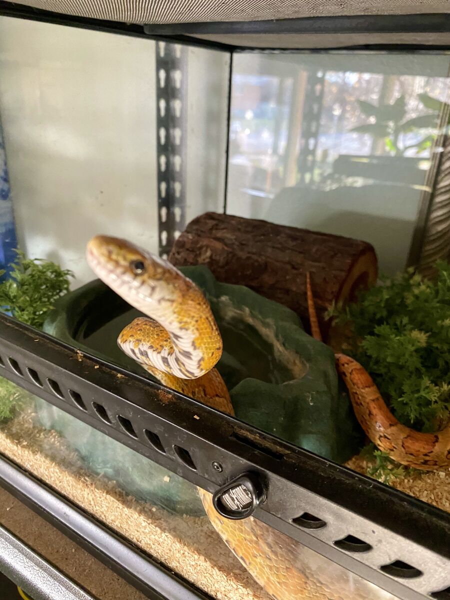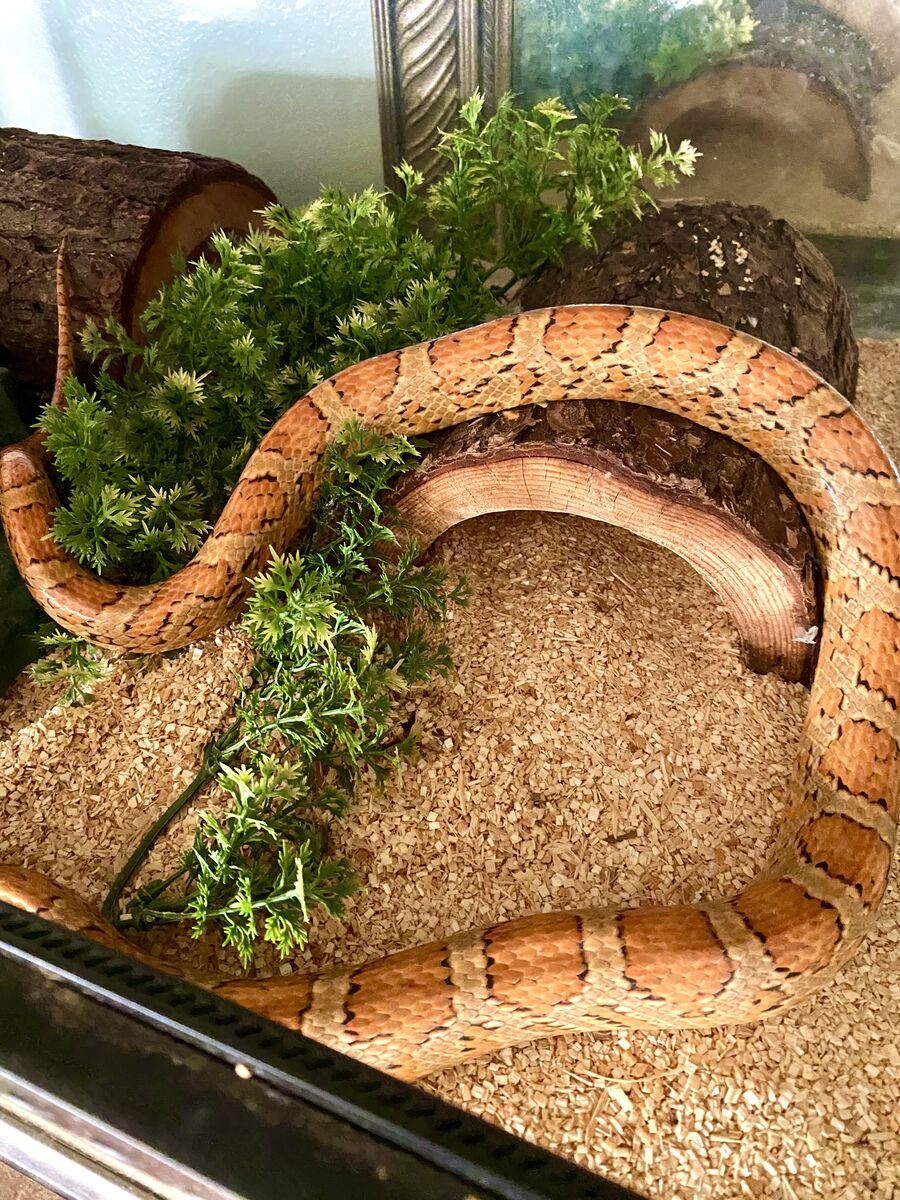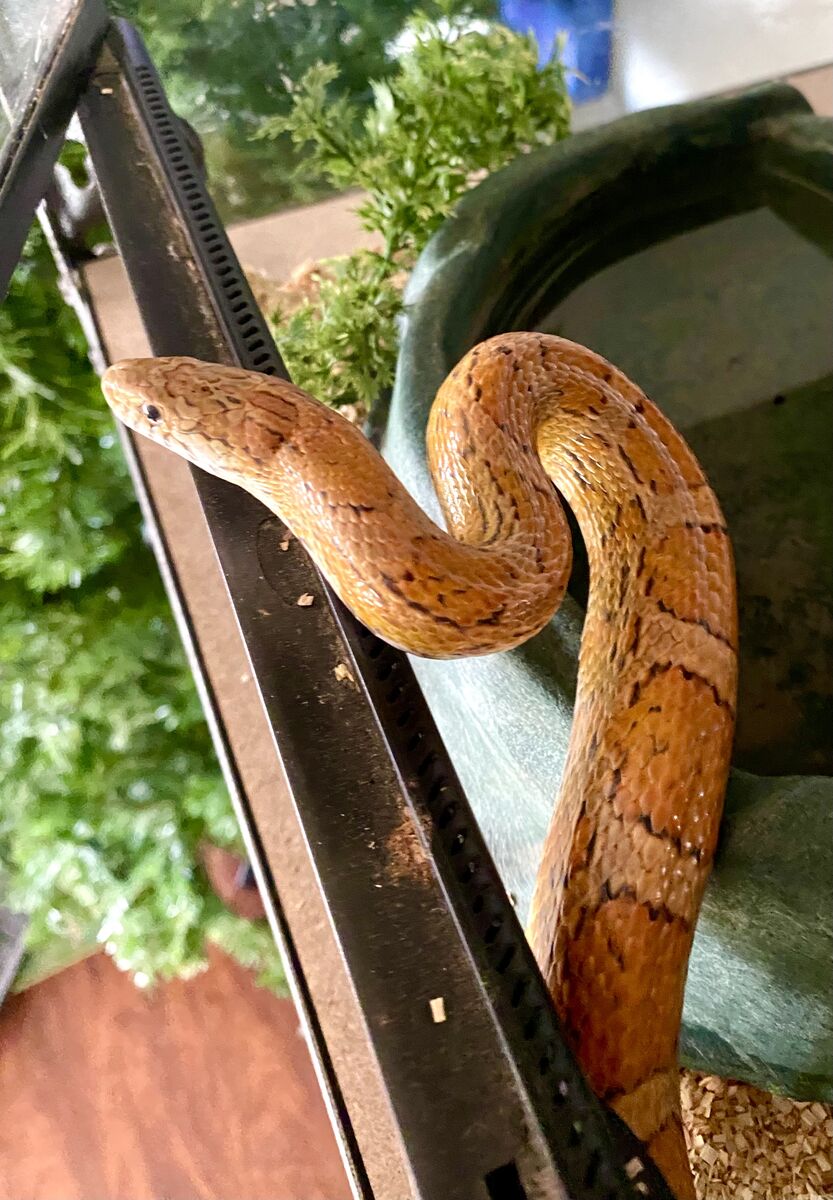 Carrot Cake is a big girl, and the photos don't do her color justice! She is an excellent eater of large, frozen thawed mice, fed once a week.
