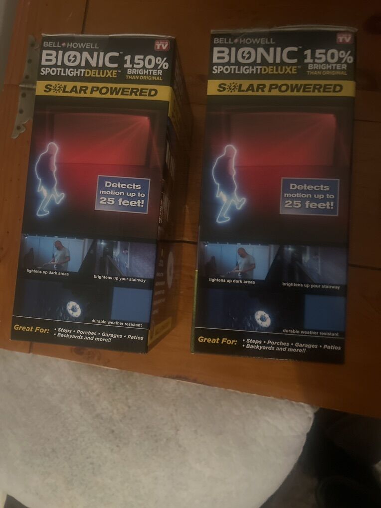 No Batteries needed!! Solar & Motion Detection. Great for both front & back. This is a 2 pack BRAND NEW NEVER USED still in the box.