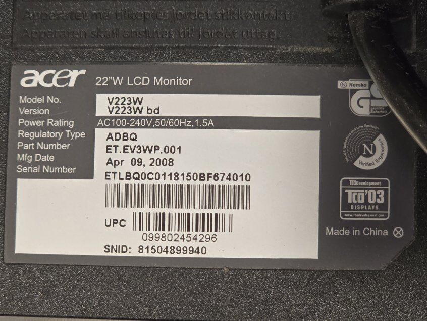 ZelleACER 22"W LCD monitor with wall mount. We used this next to our treadmill at our last house and connected it to a device to watch shows while exercising.