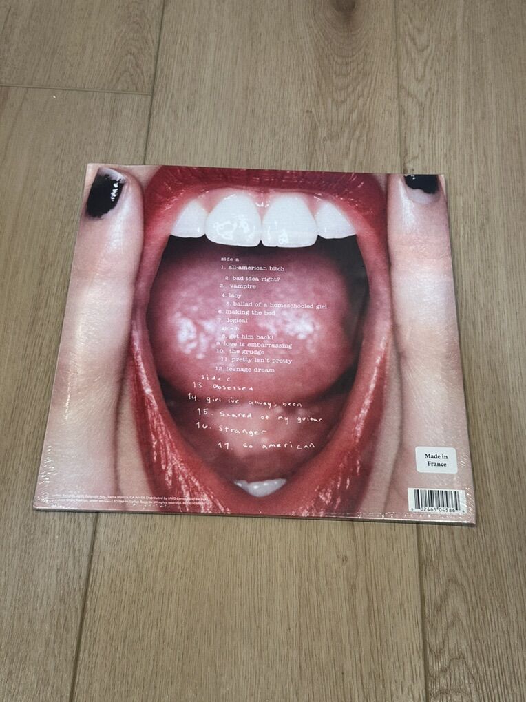 3-time GRAMMY® award winning recording artist olivia rodrigo reissues GUTS on extremely limited edition 2LPdeluxe vinyl. housed in a gatefold jacket, featuring reworked artwork and 5 extra tracks, this special edition splatter vinyl is the only pressing featuring the full collection of GUTS songs and it is completely SOLD OUT making it even more rare and valuable! GUTS was recorded with producer daniel nigro, who also collaborated with olivia on SOUR, her chart-topping, 4x platinum debut album. “for me, this album is about growing pains and about trying to figure out who I am at this point in my life and exactly what I want to say in my songs. 1. all-american bitch 2. bad idea right? 3. vampire 4. lacy 5. ballad of a homeschooled girl 6. making the bed 7. logical 8. get him back! 9. love is embarrassing 10. the grudge 11. pretty isn’t pretty 12. teenage dream 13. obsessed 14. girl i’ve always been 15. scared of my guitar 16. stranger 17. so american