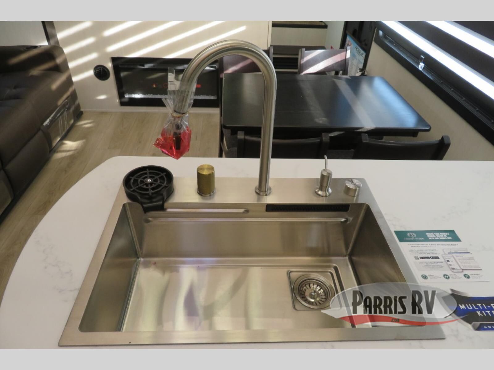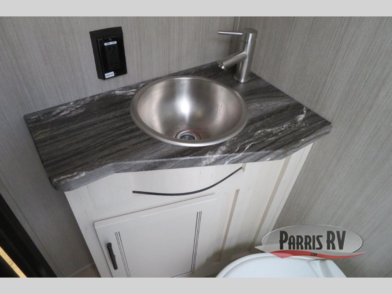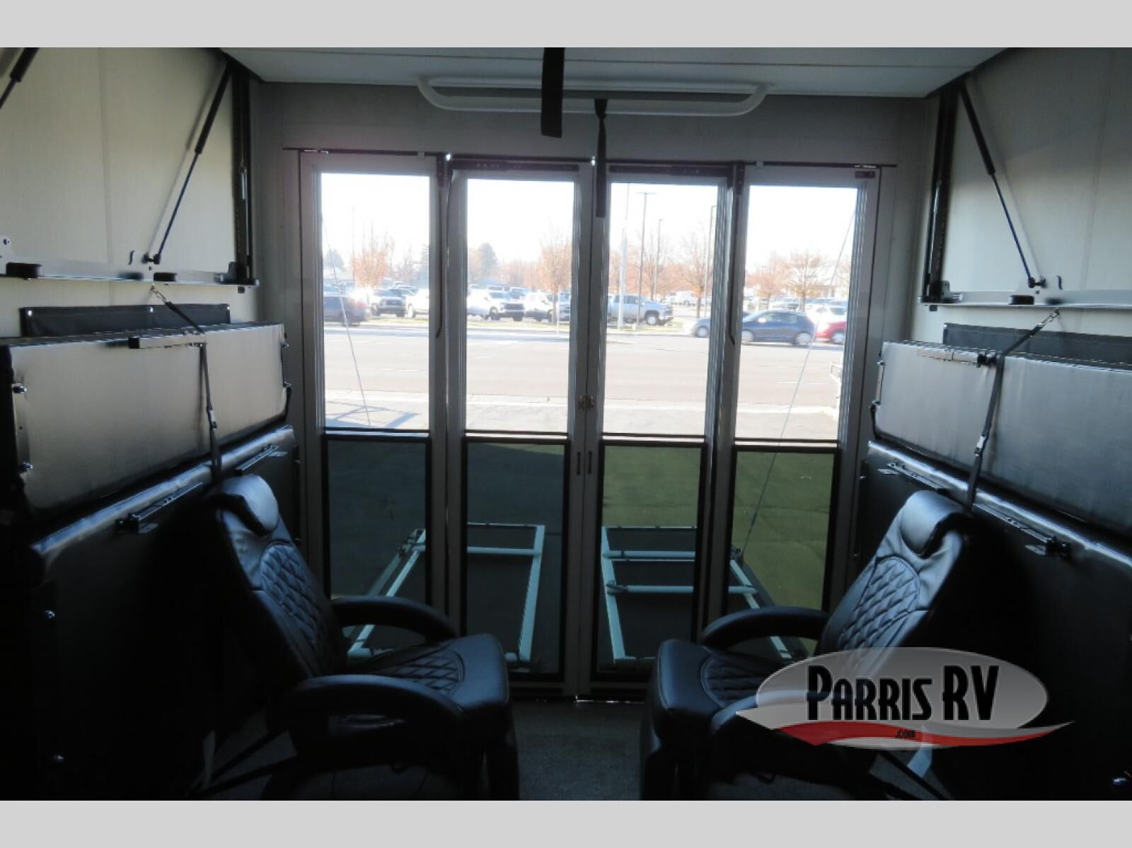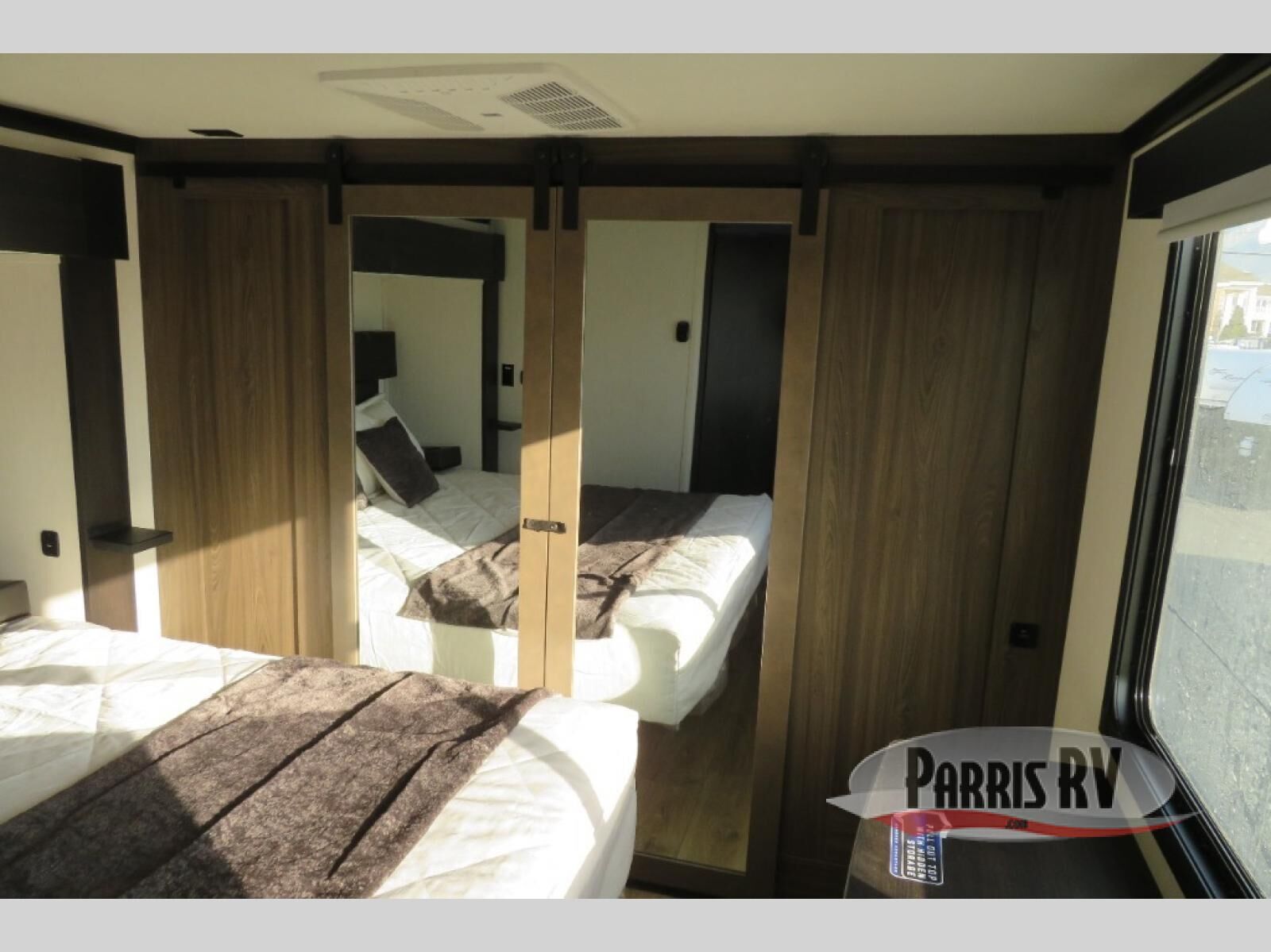 This toy hauler is perfect for a larger group since it can sleep up to eight with the added loft in the garage. There are also dual flip-up sofas here, along with a queen bed above and a half bath for added convenience! The dual entry full bath is up front, creating a master bedroom you are sure to love. There is a king bed slide out, a front wardrobe, and a dresser to keep your things organized. Head to the middle kitchen and living room to relax on the sofa within the large slide out, dine at the table with four chairs, and cook in the full kitchen. This unit also includes a fireplace to make it cozier, a large pantry to keep snacks stocked, and dual power awnings to expand your living space outdoors!