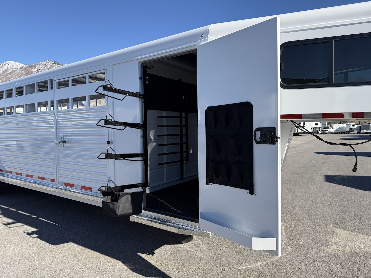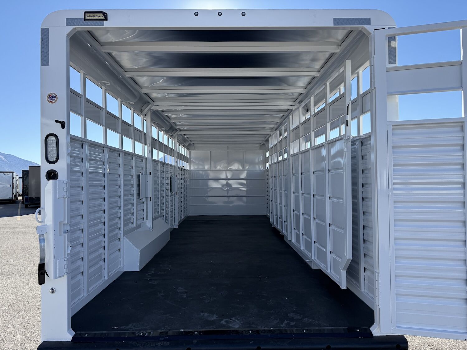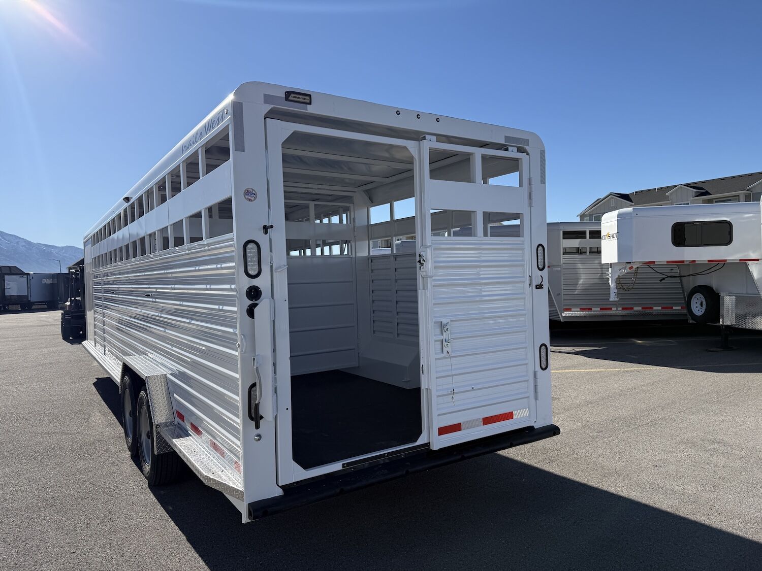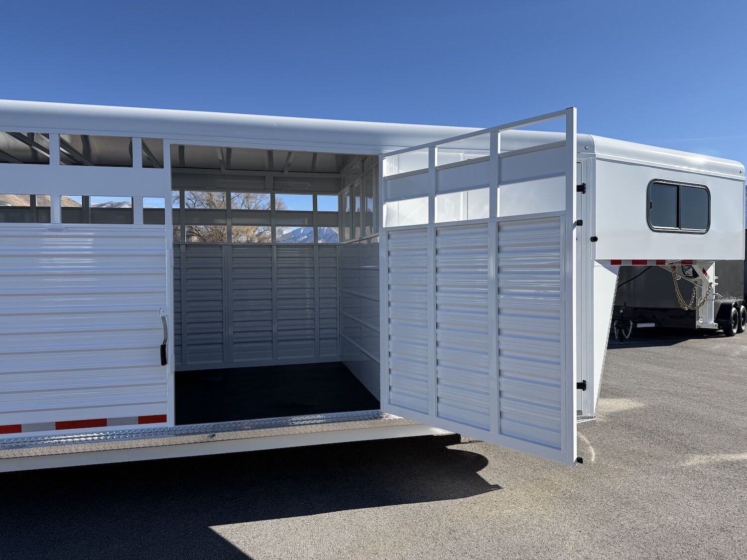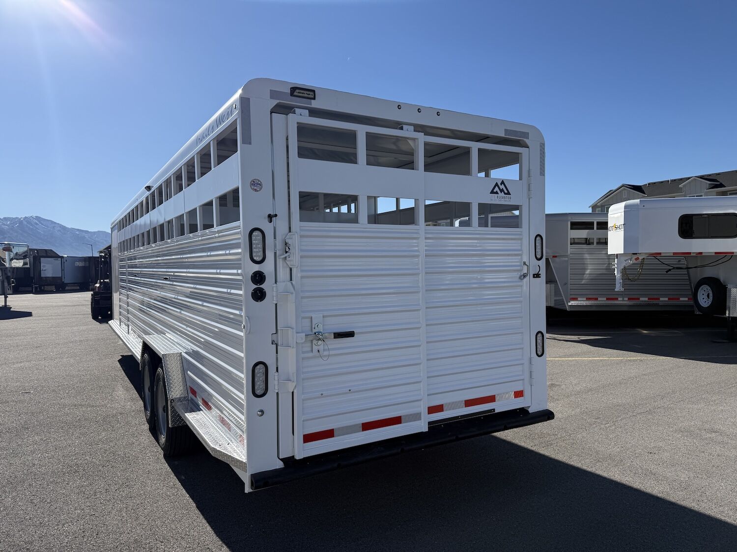 The Trails West Hot Shot gooseneck trailer is a 7’6″ wide x 7’ tall livestock trailer. The design of this trailer has electro-galvanized seamless corrugated steel sides for strength and durability. This extra-safe stock trailer is light weight and built for safety. This is a great pulling trailer because of the aerodynamic design of the front, cutting the wind while still providing enough space in the gooseneck area for an optional tack package. Check out this great priced trailer that is built for real stock men and women.