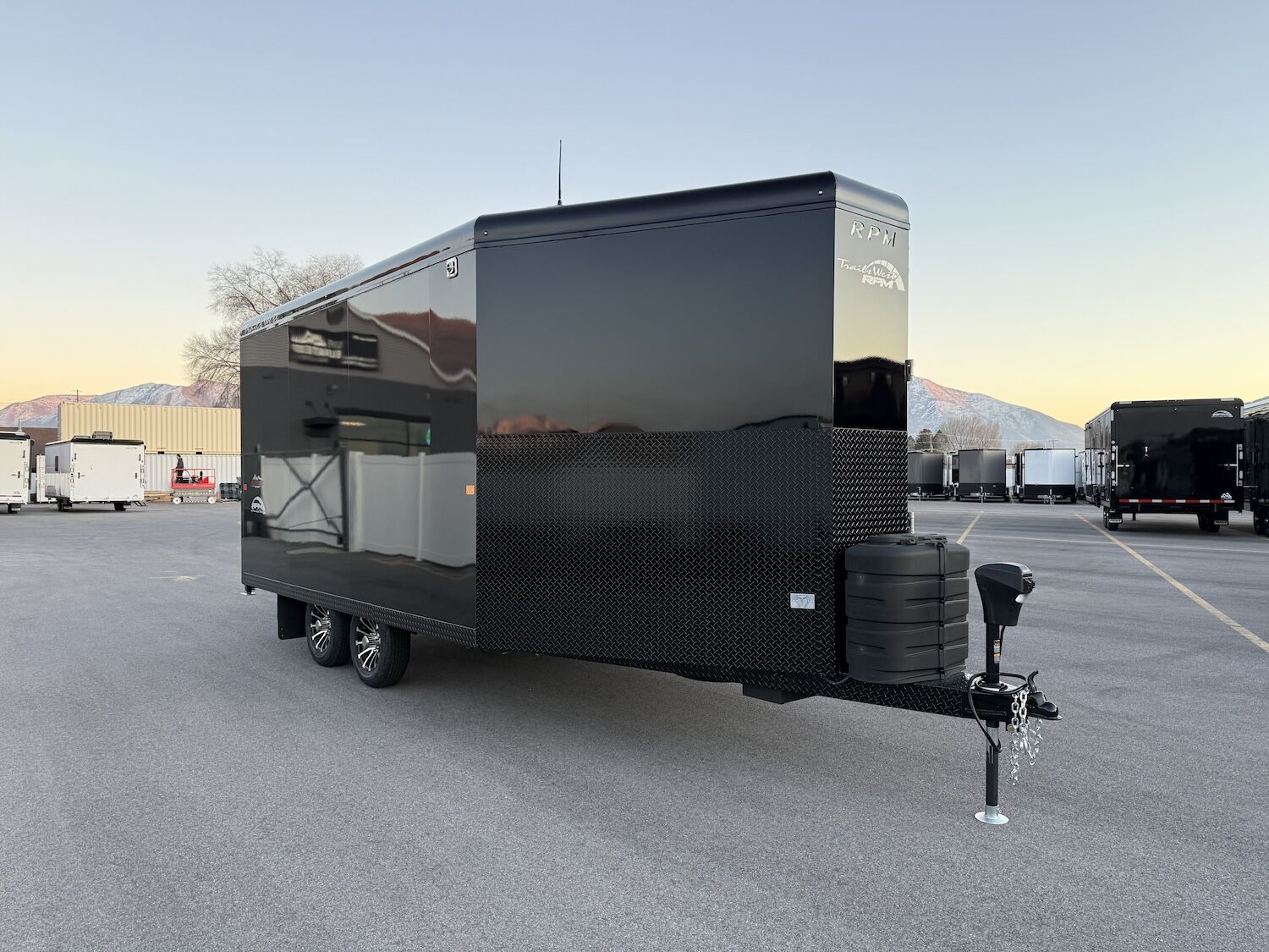 The 2026 RPM by Trails West is here!! Standard Features include a Double Step, Additional 4" of Interior Height, Aluminum Mill Finish on interior, Frameless Windows, and the newly added option of Protech Flooring! This new flooring eliminates the need of having ski glides in the box of the trailer and elevates the floor about 1/2" to keep you from standing in water when all of the snow is melting off your machines and gear! Packages we offer here at the dealership is our Life Elevated Package which includes: Propane Gauges, Garbage Can, Self-Retractable USB Charge Cables, and Ski Glides on the Front Ramp. We also offer Solar Packages to satisfy your needs of power off grid! With our level of expertise we can get you set up in a trailer specified for your needs for you to use for years to come! Come check us out! You won't regret it! The RPM Snowmobile Trailer from Trails West ensures that you travel in style while still being convenient and practical. It comes standard with the Roof and Walls Insulated, LED lights, 40,000BTU Furnace, Premium Stereo, Tons of Charging, a place to hang all your gear and much more. You can’t go wrong with this trailer! Swing on by to check it out for yourself!