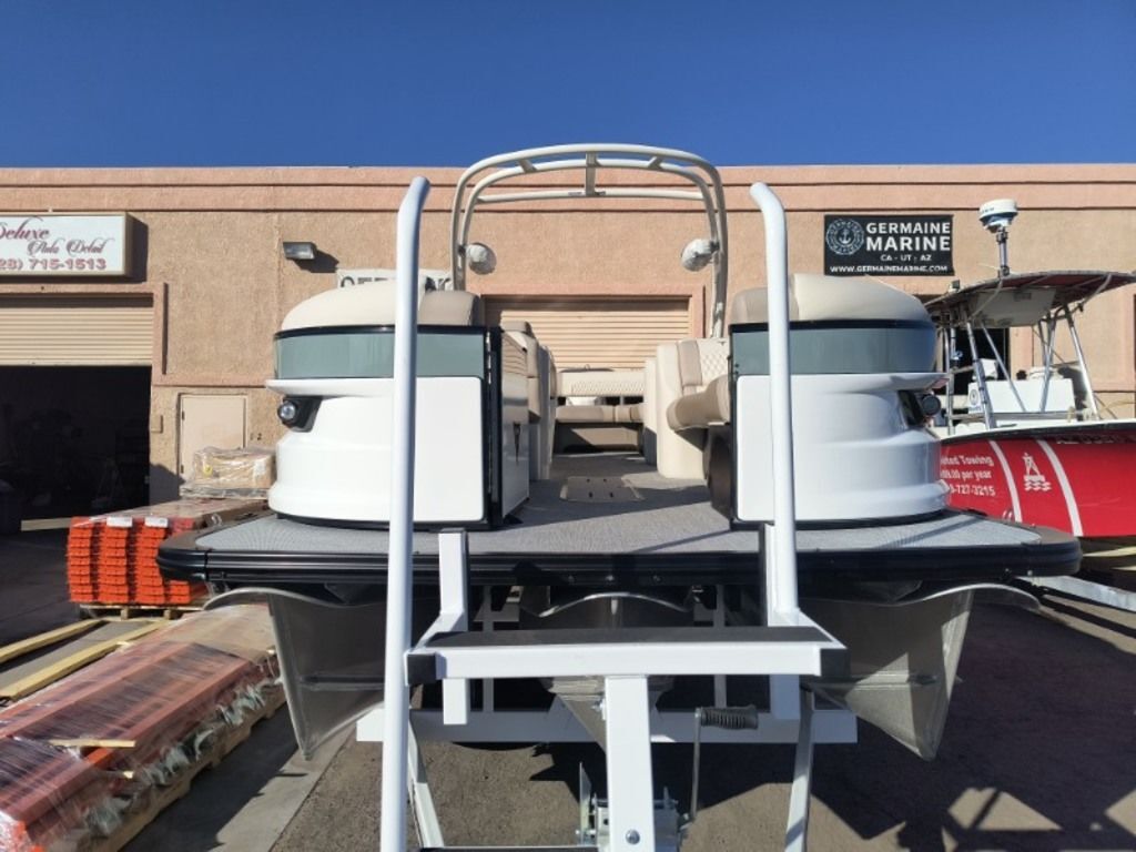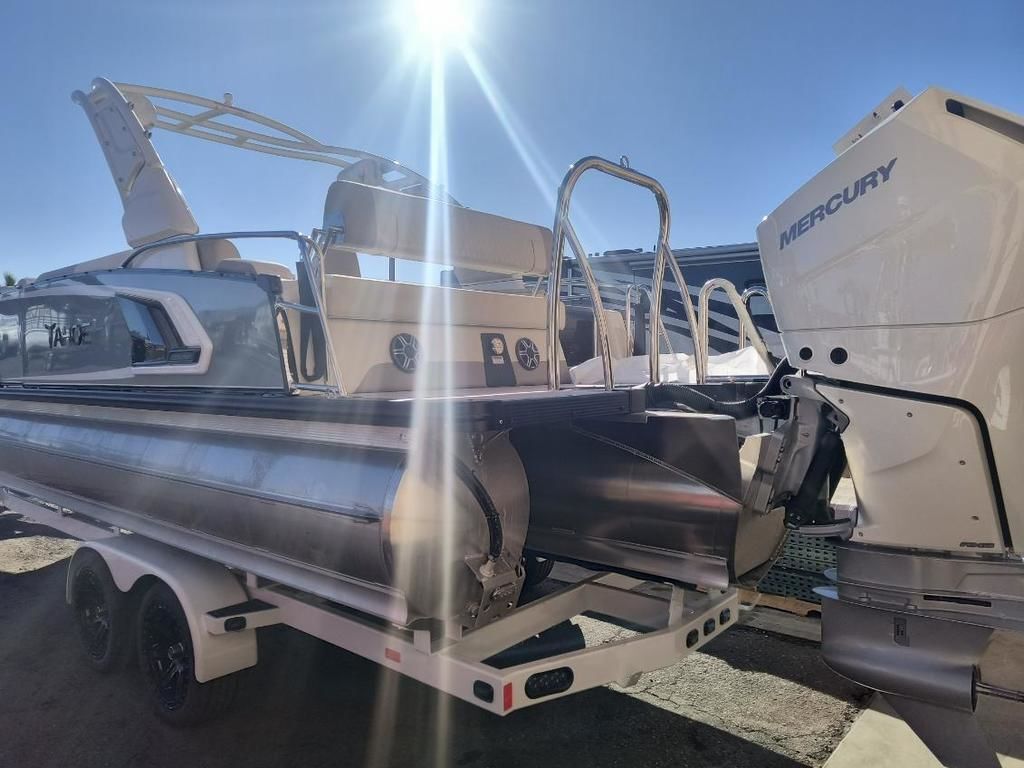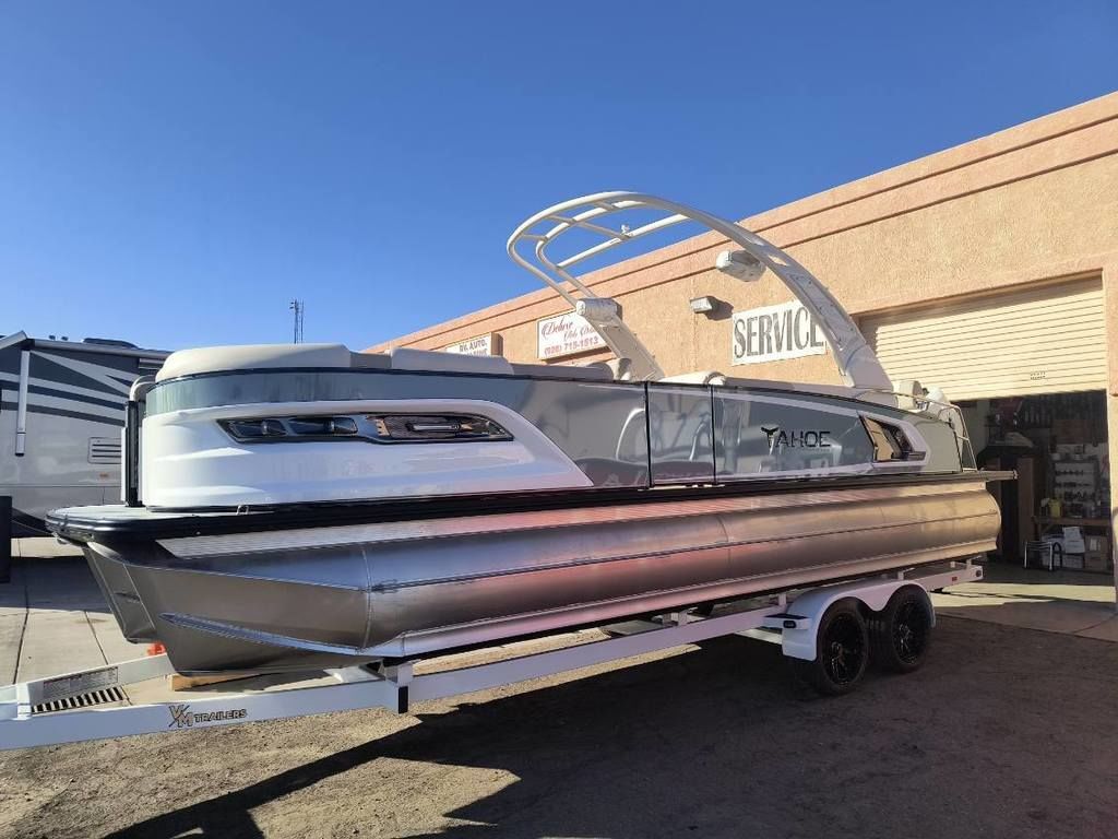Now In Stock!!... Order #775204... Come and See this one at Toonfest March 27th and 28th!!......... New 2026 Tahoe Grand Tahoe LTD 2585 (Non Windshield) Cruise Rear Bench with New Mercury Verado 425 HP V10, New Sea Mist Walls with White Accents, Ultrafine Cream White and Buckskin with Champagne Accent Interior, Luna Pearl Flooring, White EX Power Tower/Arch with Bimini Top, Fusion Premium Sound Package, Simrad Touchscreen Dash, RGB Lighting Package, Washdown System, Waveglider 27" Tube Package, 100 Gallon Fuel Tank, Nose Cone and Bottom Keels, Ski Tow Package, Storage Cover, Custom Tandem Trailer and more.... MSRP as Equipped = $219,755.39 Includes the Trailer!..... Toonfest Special only $165,000 As Equipped, Includes the Trailer... Plus Tax, Doc and Registration!!.... Call Germaine Marine In Lake Havasu at 928-855-8588 for more details!!........