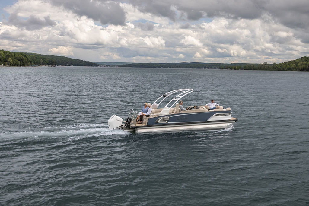 Introducing Grand Tahoe LTD, the result of years of technical refinement and aesthetic accomplishment and the newest member of the Tahoe Master Collection. This is a fully loaded, premium pontoon for the most discerning buyer. Featuring our distinctive retro two tone wall design to the beautifully designed helm stand, this pontoon is the perfect marriage of performance and style. This gorgeous pontoon is available in nine outstanding layouts.