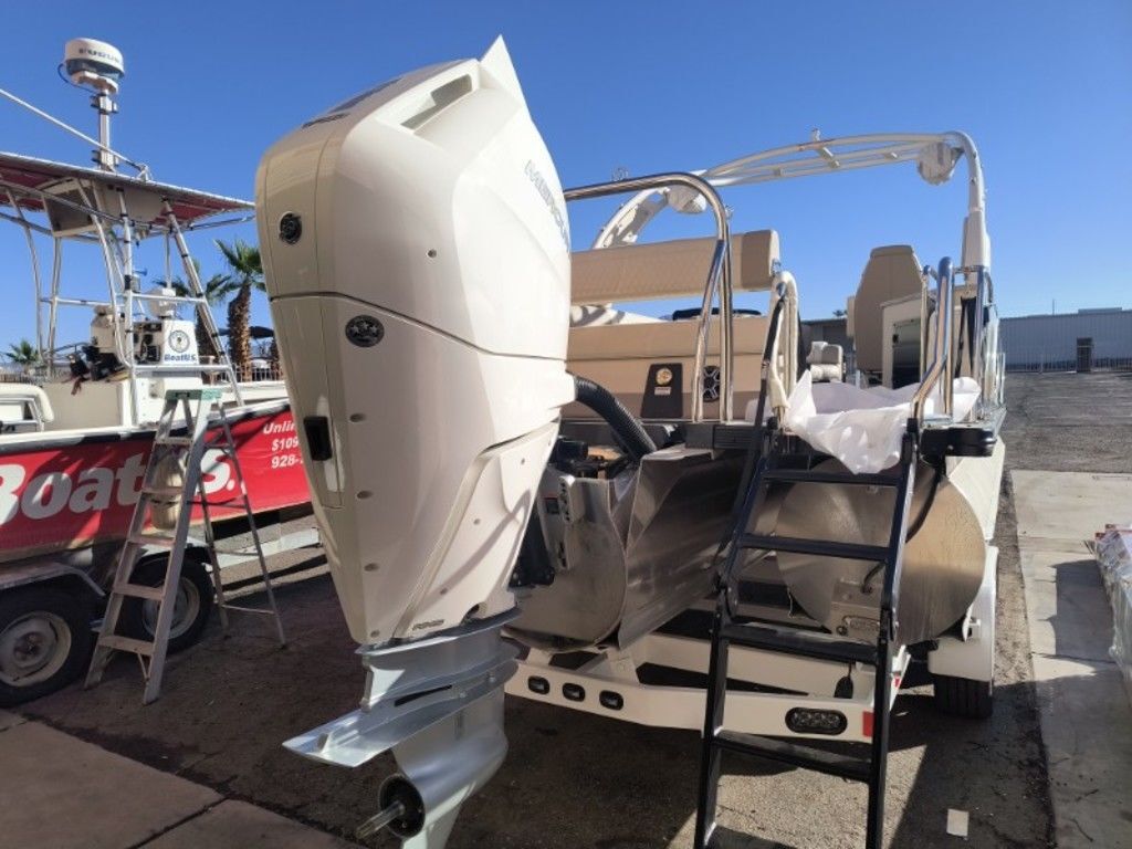 Now In Stock!!... Order #775204... Come and See this one at Toonfest March 27th and 28th!!!...New 2026 Tahoe Grand Tahoe LTD 2585 (Non Windshield) Cruise Rear Bench with New Mercury Verado 425 HP V10, New Sea Mist Walls with White Accents, Ultrafine Cream White and Buckskin with Champagne Accent Interior, Luna Pearl Flooring, White EX Power Tower/Arch with Bimini Top, Fusion Premium Sound Package, Simrad Touchscreen Dash, RGB Lighting Package, Washdown System, Waveglider 27" Tube Package, 100 Gallon Fuel Tank, Nose Cone and Bottom Keels, Ski Tow Package, Storage Cover, Custom Tandem Trailer and more.... MSRP as Equipped = $219,755.39 Includes the Trailer!..... Toonfest Special only $165,000 As Equipped, Includes the Trailer... Plus Tax, Doc and Registration!!.....Call Germaine Marine In Lake Havasu at 928-855-8588 for more details!!........
