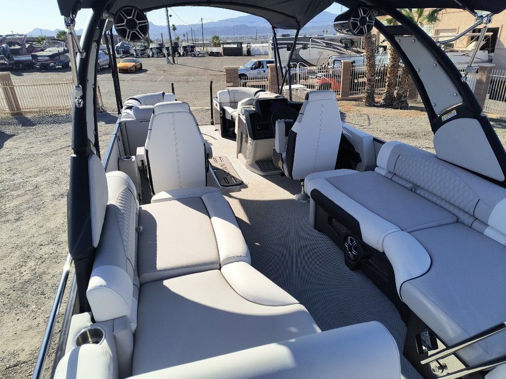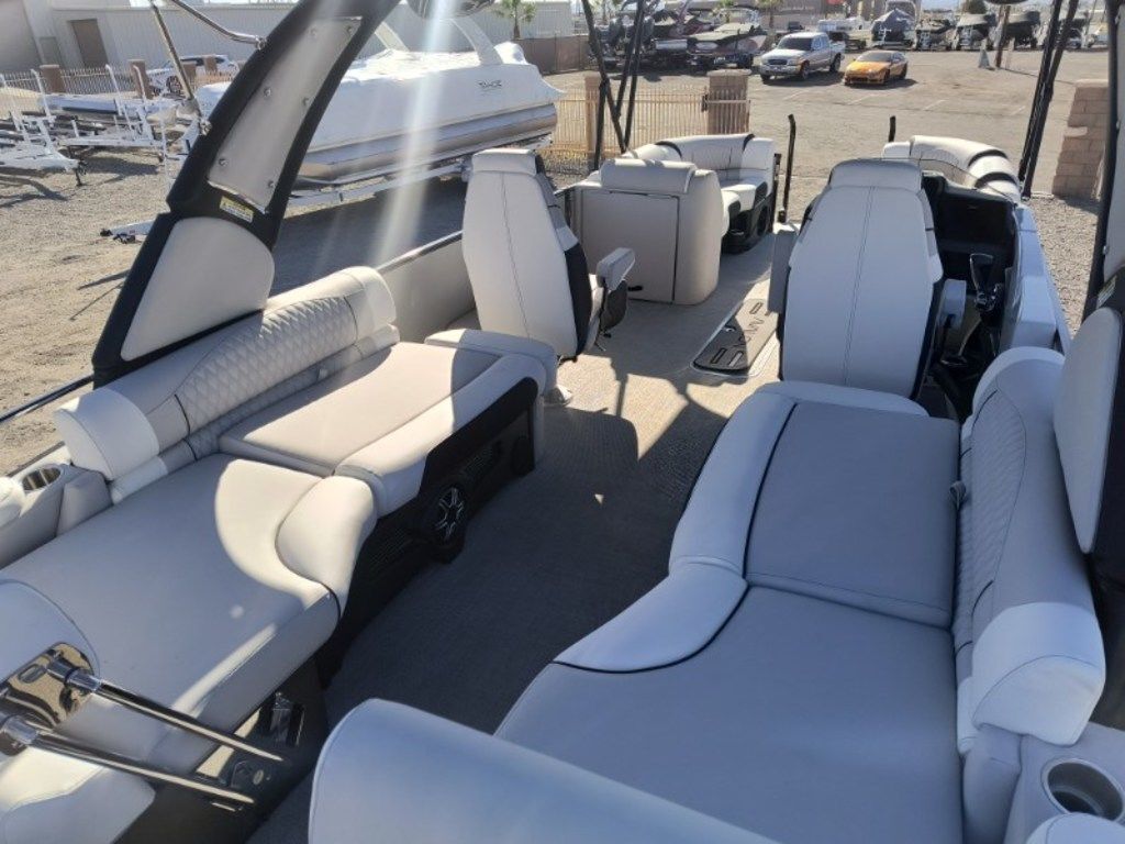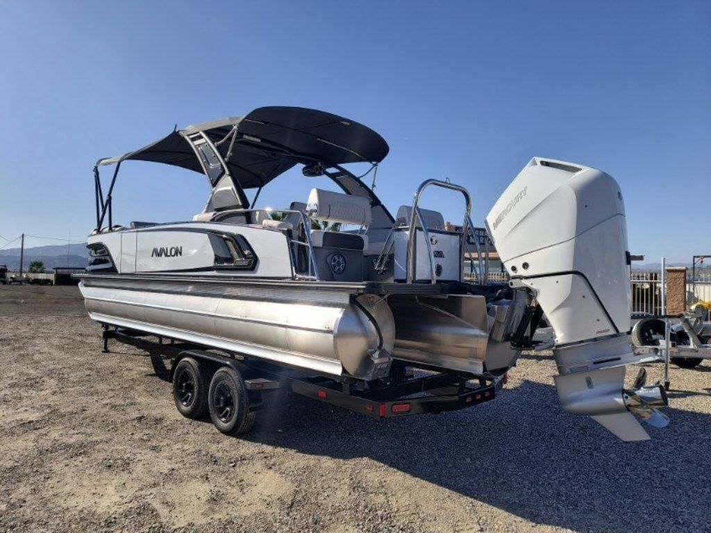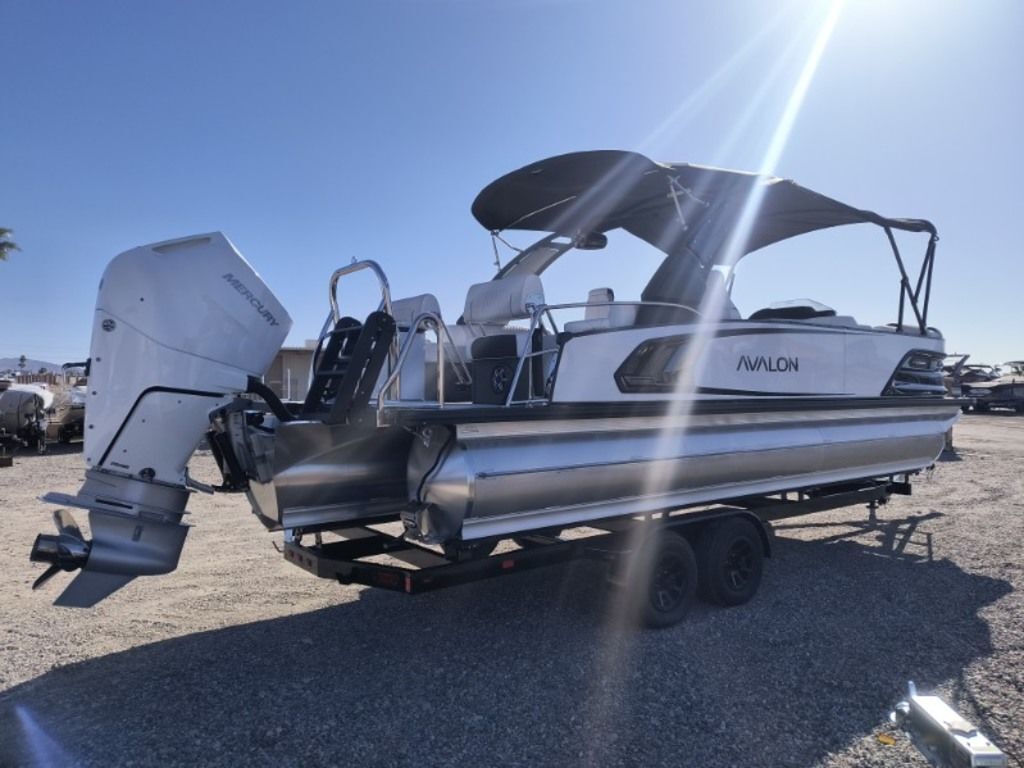 Come and See this One at Toonfest March 27th and 28th!!! ... "Toonfest Discounts Applied!!"..Order #774786... Just Arrived!.... New 20206 Avalon Excalibur LTD 2585 (Non Windshield) Quad Lounger Shift with New Mercury Verado 425 HP Motor, White Flake Metallic and Black Exterior, Ultrafine Silver and Bright White Interior, EX Power Tower Black with Bimini Top, Fusion Premium Sound System, Simrad Touchscreen Dash, Washdown System, 27" Waveglider Pontoon Package, 100 Gallon Fuel Tank, Front Bimini Extension, Storage Cover. Custom Tandem Trailer and More..... MSRP as Equipped $219,823.00 Includes the Trailer...... Toonfest Special Only $165,000!! As Equipped, Includes the Trailer!!... Plus Tax, Doc and Registration........Call Germaine Marine in Lake Havasu at 928-855-8588 for more details......