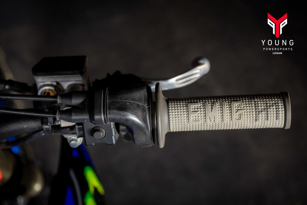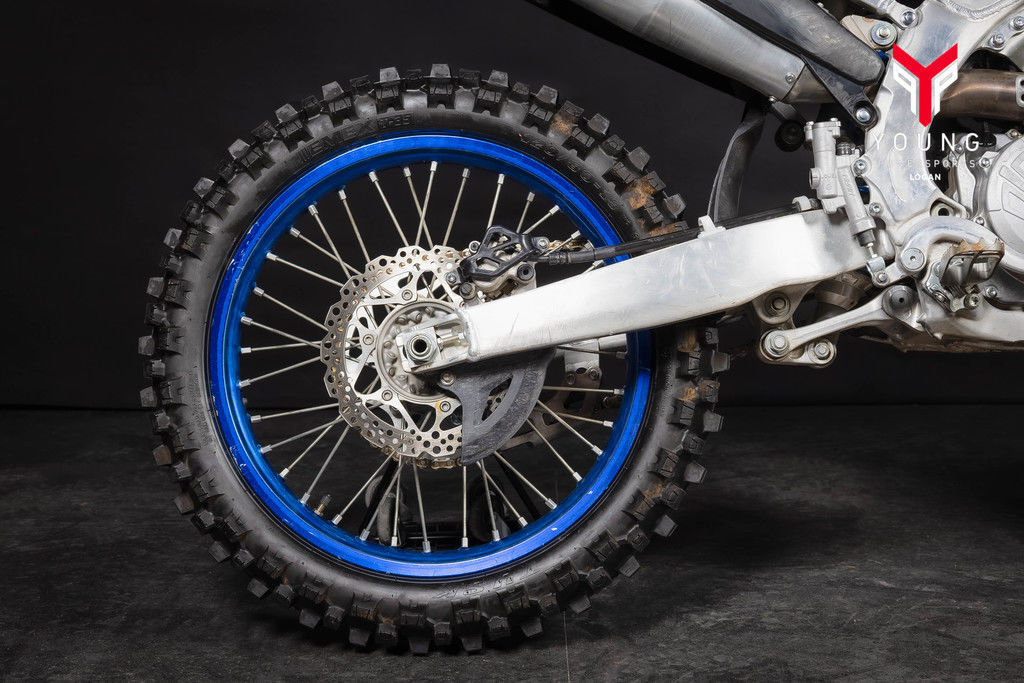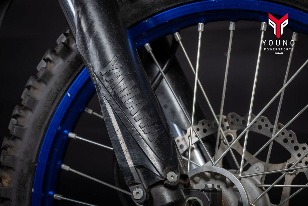 The YZ250F boasts top-spec details including 1-1/8-inch aluminum tapered handlebars secured to four-position adjustable handlebar mounts, wide 55mm footpegs, a quick-adjust clutch perch, stylish blue rims and a lightweight gold drive chain.