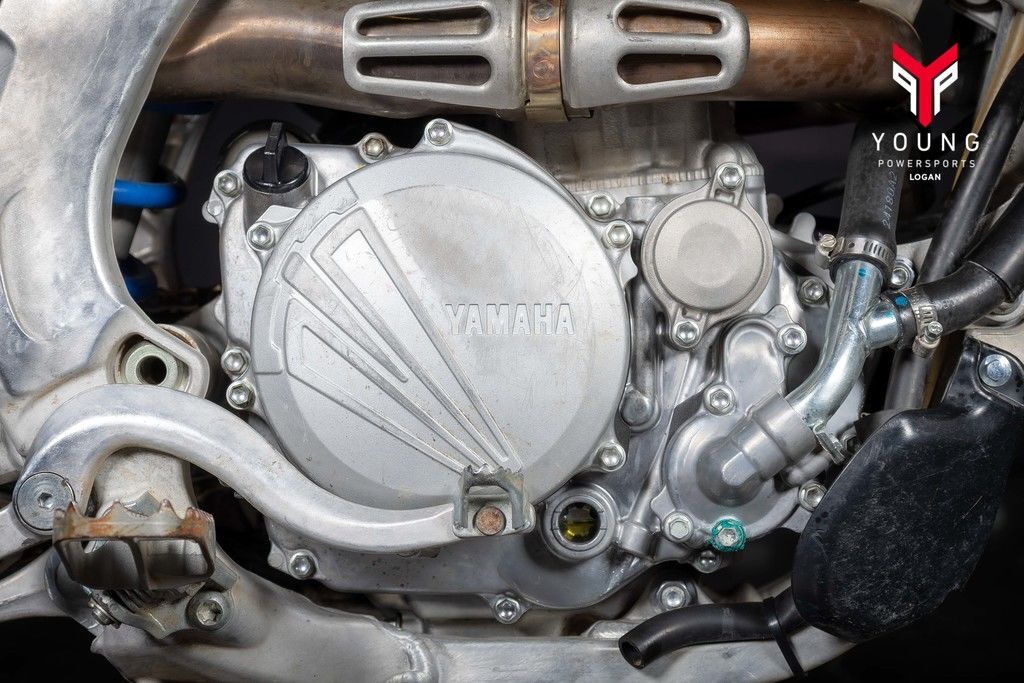 The YZ250F's liquid-cooled, DOHC 4-valve, fuel-injected powerplant features a forward-positioned straight downdraft intake with symmetrical intake ports, high-spec piston, aggressive cam profiles and reversed cylinder head layout. The advanced four-stroke engine is known for its broad, useable powerband and class-leading low-end and mid-range torque.