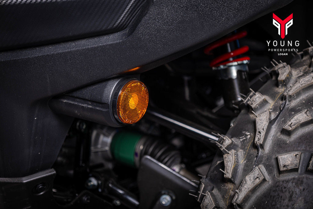 The multi-function instrument panel has excellent appearance and visibility and provides service reminders based on running time or mileage. The instrumentation includes LCD readouts for the speedometer, odometer, twin trip meter, hour meter, clock, fuel level, riding range, and drive mode. There are LED indicators for high, low, neutral, reverse, 2WD/4WD, and differential-locked 4WD and LED cautions for fuel injection and engine temperature.