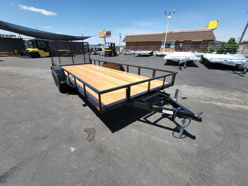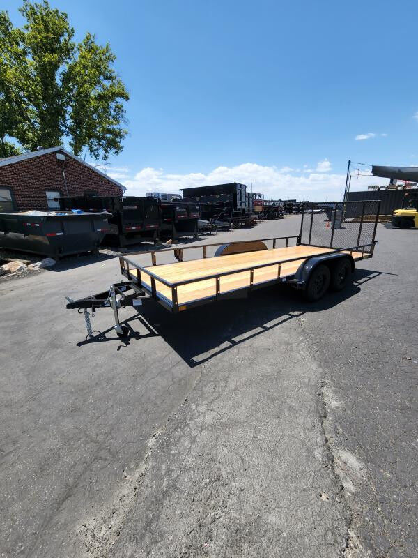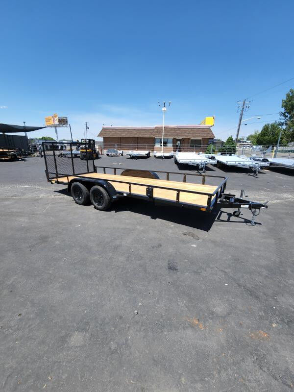 SPECS WIDTH: 7' LENGTH: 18' DOOR(S)/RAMP(S): Fold Up Gate WEIGHT: 1350 lb GVWR: 7000 lb PAYLOAD: 5650 lb AXLE(S): Tandem Axle COUPLER: 2 5/16"