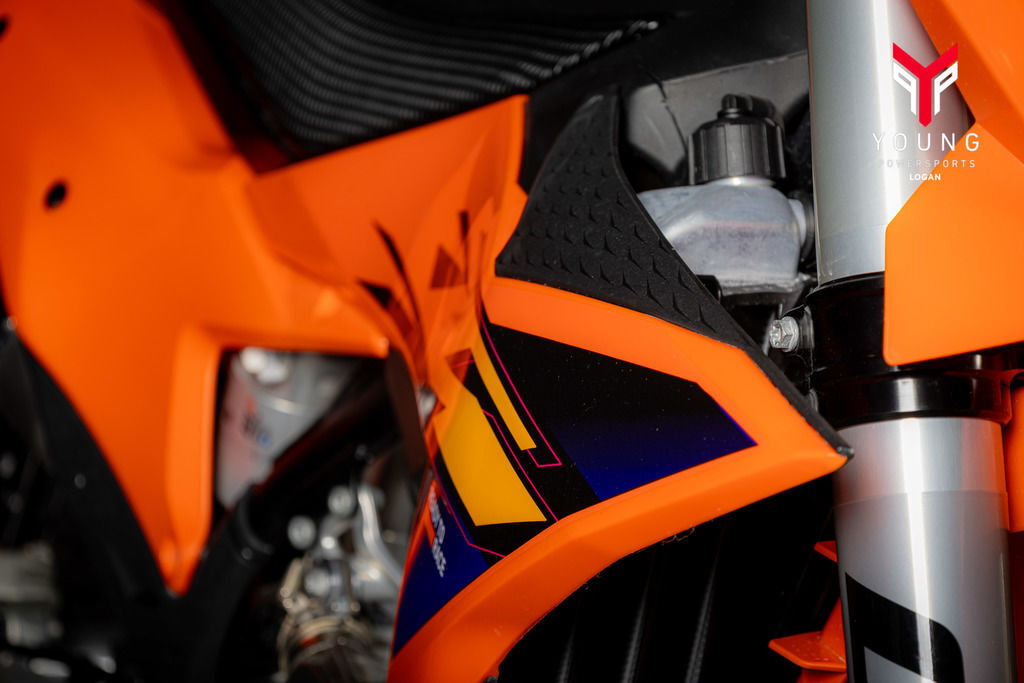 Get ready for a full-on berm assault. The KTM SX and SX-F machines received major frame updates directly from KTM Factory Racing efforts. For starters, the area around the rear shock mount is streamlined, with engine mounts and cut-outs for improved chassis flex. The front area of the frame has an optimum wall thickness with renewed engine mounts.