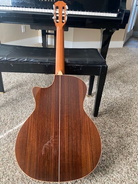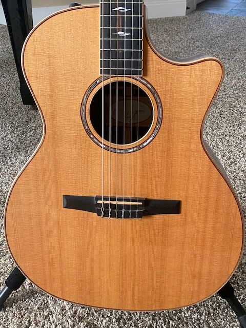 TAYLOR 814ce-N (Nylon). This is a wonderful Taylor guitar that looks and plays beautifully. Rosewood back and sides with spruce top and maple binding. The Taylor electronics, as usual, sound great. If you like something a little easier than an acoustic steel string, or if you like a slightly wider neck but still want access to a full 14- fret neck plus have access to those high notes via a cutaway, this guitar is perfect. When I taught guitar I encouraged my students to start with a nylon like this, because it’s just so much easier to play, but still has the feel of a standard acoustic guitar. I’m the original owner. I haven’t played this guitar other than the first few weeks after I bought it. It still has the original strings. Beautiful finish with no scratches or dings. I bought it thinking I would use it for a recording project that didn’t end up happening. But if I was a Nylon player or a beginner or needed nylon for some of the songs in my set, this would absolutely be my guitar of choice. It comes with the original Taylor hardshell case and the various paperwork that came with the guitar. These sell new for $4,000.00 and this one is definitely just like new. $2,500.00. Call or text Steve: 801-669-4041.