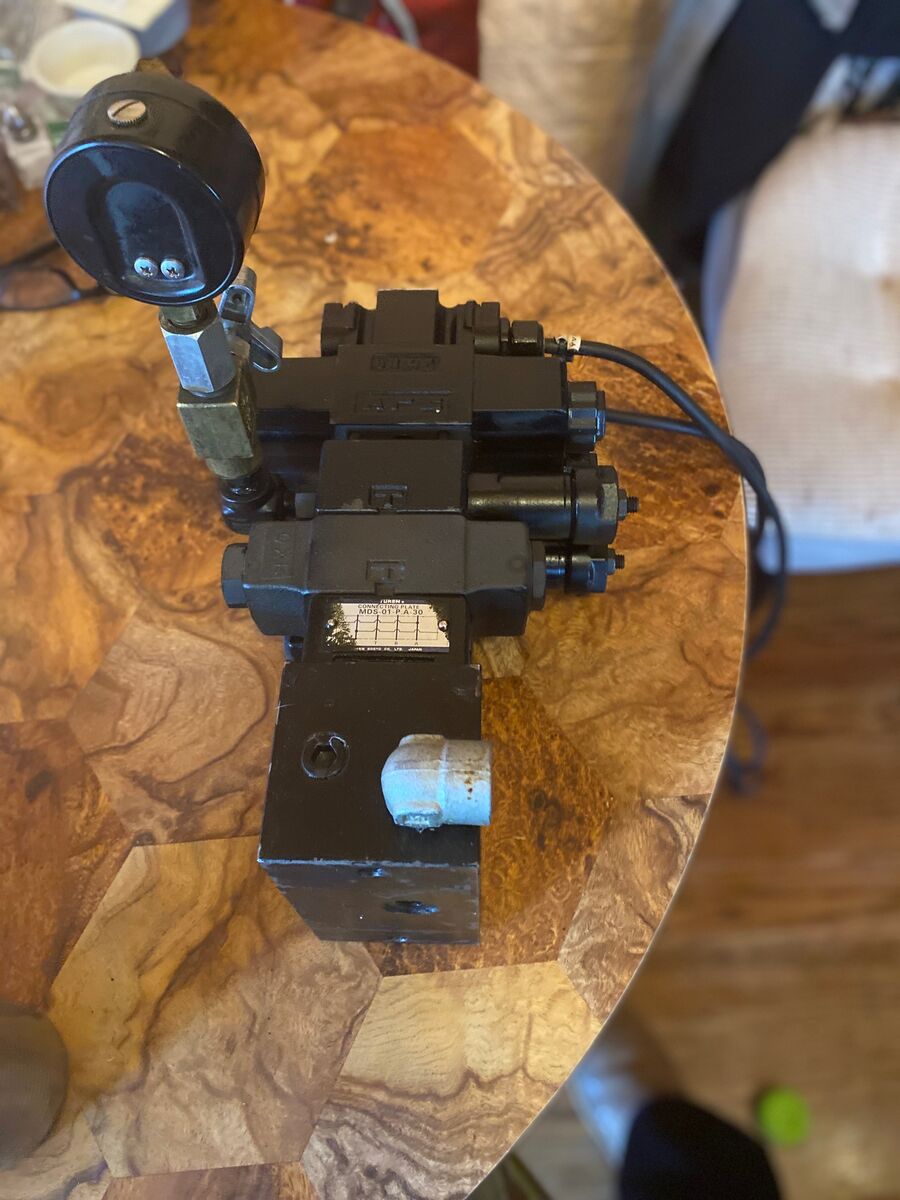 Yuken pic 1-directional valves (2) DSG-01-3C9-A100-60.. 2- check modular valve MCT-01-0-3022.. 3- connecting plates MDS-01-P.A-30 & MDS-01-P.B-30.. 4- pilot operated check modular valve MPB-01-4-4001.. 5- reducing modular valve MRB-01-B-3033.. 6- relief modular valve MBP-01-C-30.. 7- hydraulic modular valve base plate 2 station D03 manifold MMC-01-2-40.. last 3 pics was it all together.. $20 for all. if you can use any or all please make me an offer you can't refuse, or TRADE. I don't know what to ask for it an I don't want to throw it away. they are expensive on ebay if someone would buy them. thanks tex if interested