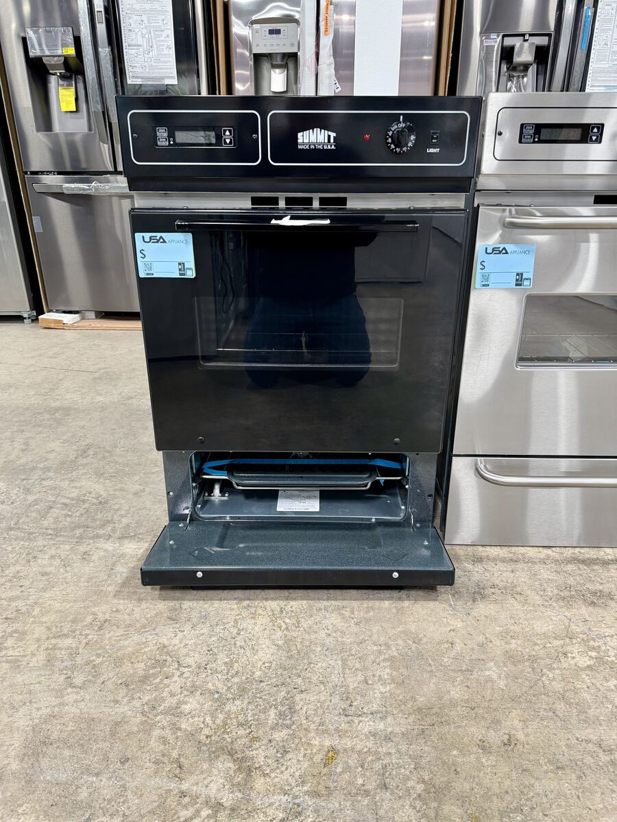 SUMMIT 24 Inch Single Gas Wall Oven with Electronic Ignition, LP Conversion, Porcelain Interior, Lower Broiler, Digital Clock, Timer, Interior Light and 2.92 cu. ft. Capacity: Stainless Steel, Stainless Steel Control Boar