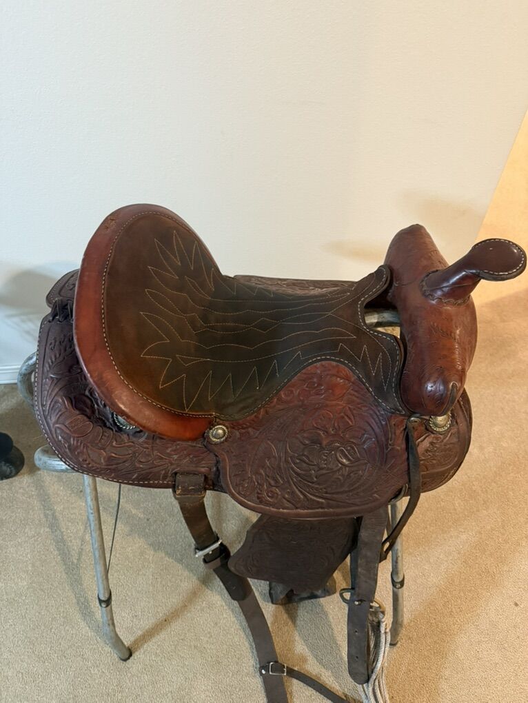 Venmo15 saddle. Freshly oiled nice tooling 7 gullet. Complete with front and back cinch. Please text with any questions. Located in Springville