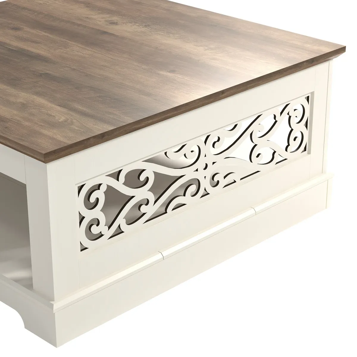 CashAppMillwood Pines Korbin Coffee Table with Storage in Ivory Knotty Oak
