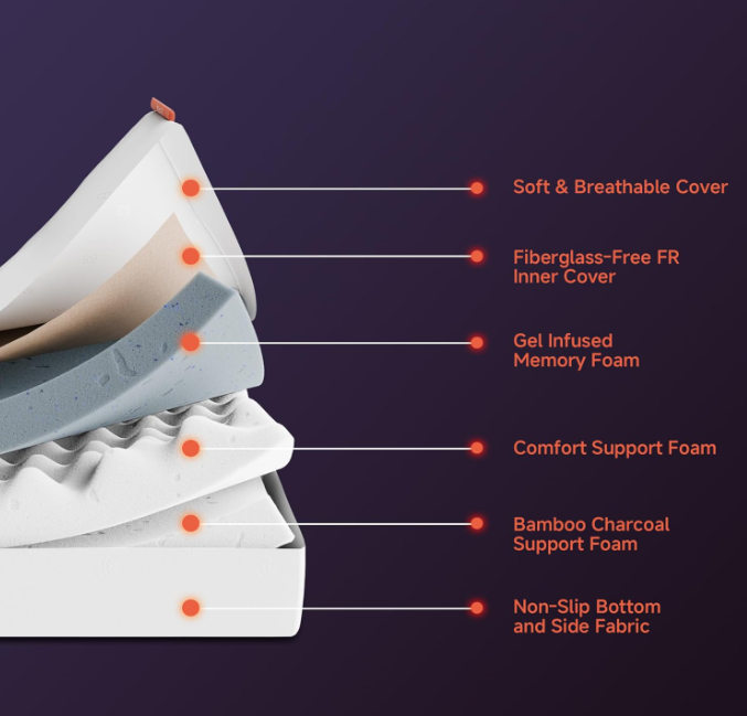Zelle[COOLER COMFORT FOR HOT SLEEPERS] – Stay cool and sweat-free all night with our gel-infused memory foam and breathable cover. This queen cooling mattress absorbs excess body heat and promotes airflow to maintain a balanced sleep temperature and prevent overheating. Enhanced airflow through each layer improves ventilation and prevents night sweats, reducing tossing and turning. This sleep mattress is perfect for warm climates, hot sleepers, and anyone prone to night sweats.