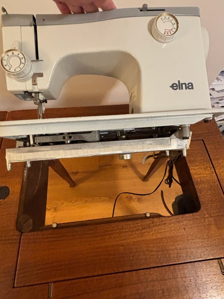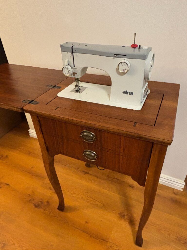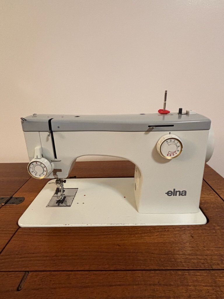 Federal Style MCM Sewing Cabinet with rare Swiss Elna Sewing Machine. Model 11c/31 (approximately 1972).