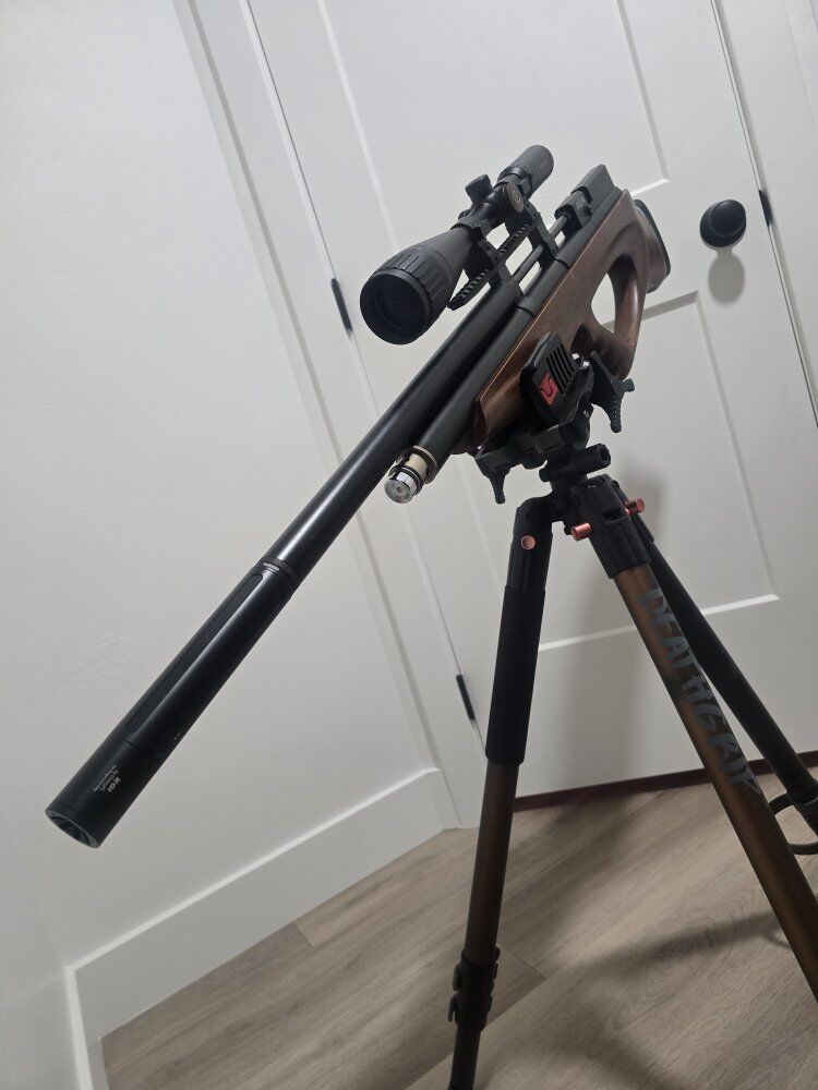 Has no issues, and holds pressure. comes with DonnyFL Koi moderator, and Hawke Vantage 4-16×50 optic with red, and green illuminated reticle. somehow I have misplaced one magazine, and the front gauge cover, but those are fairly easy to replace. has fill probe, and one magazine. excelent for pest control, or plinking. You're welcome to throw out an offer, but I'm not going to drop too far based on the money invested in the setup