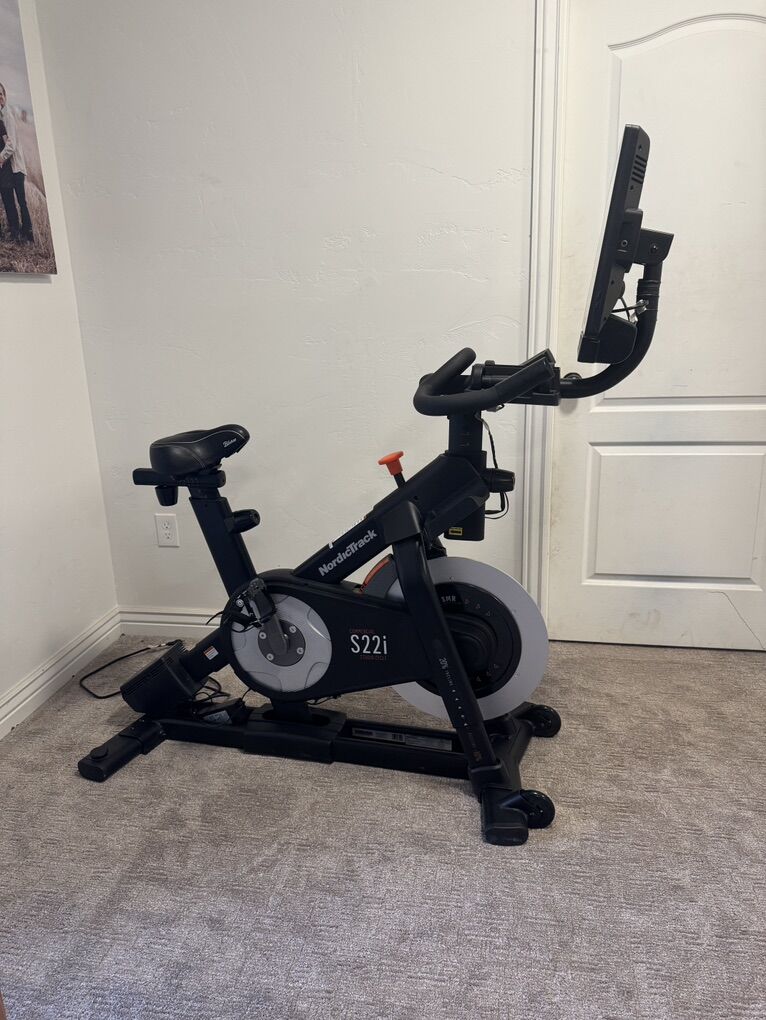 PayPalOnly riden a handful of times. I changed out the seat for a more comfortable one, but still have the original seat. Follow your iFit trainer on the Rotating 22-inch Smart HD touchscreen with enhanced graphics and wifi connectivity. Plus, access your workout stats and training progress with the swipe of a finger Your iFit trainer controls your S22i’s -10% decline, 20% incline capabilities, and 24 digital resistance levels to mimic the natural terrain of your iFit workout — From Japan to Germany and everywhere else Cycle from Maui to Switzerland like you’re right there. The added processor cooling enables improved graphics performance on the upgraded 22” Smart HD Touchscreen Better, more reliable, faster, the S22i’s Wi-Fi is ready to connect you to the best workouts you can experience Simply connect your Bluetooth headphones to your studio cycle and listen to your iFit trainer without any outside distractions Discover steady movement throughout your workout with an inertia-enhanced flywheel that’s made to last Experience a smooth ride with the SMR™ Silent Magnetic Resistance, so you can workout without the extra noise Get an upper body workout while you push the pedals with the complimentary dual 3 lb. dumbbells Move your seat vertically and horizontally to find the most comfortable position for your riding style Elevate your workouts and up the intensity with 24 levels of digital resistance controlled and adjusted automatically by your iFit trainer Cool down with the AutoBreeze workout fan that automatically adjusts to match the intensity of your workout
