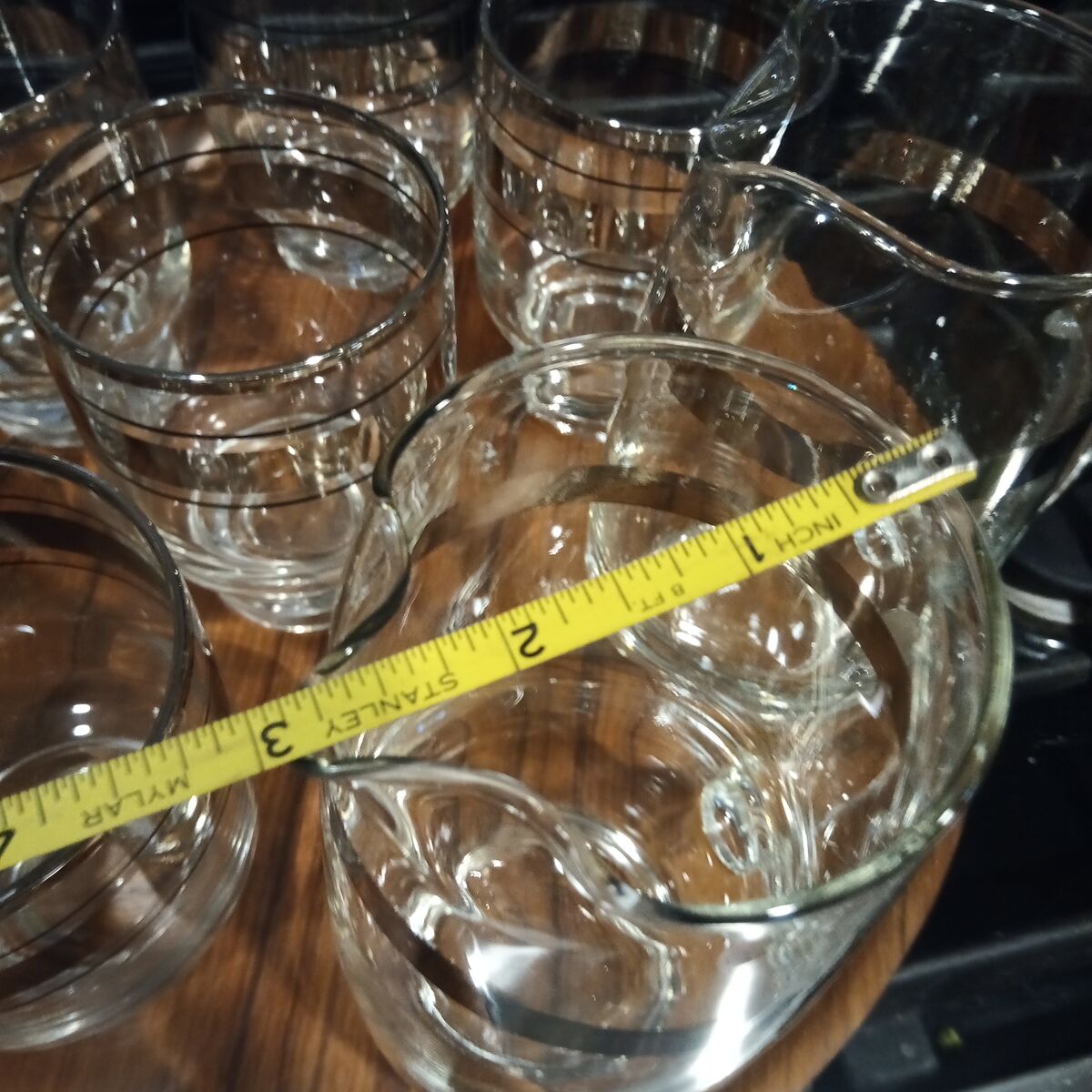 two small Libbey martini/cocktail pitchers, in a matching style to the glasses