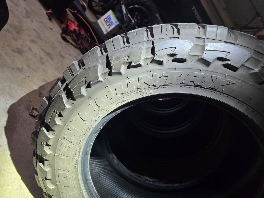 ZelleI have a set of four Toyo Open country M/T (mud terrain) for sale 35x12.5R20 12 ply not 8. They have about 26,000 mi on them.. they still have some life left in them. 2 of them wore a little funny cause I found out the dealer wasn't rotating them every time I took it in. pretty frustrating when you spend 600 bucks a tire. 300 bucks. text is best. thanks for looking