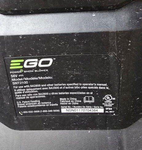 EGO snow blower SNT2100 with 2 x 5AH batteries and charger.