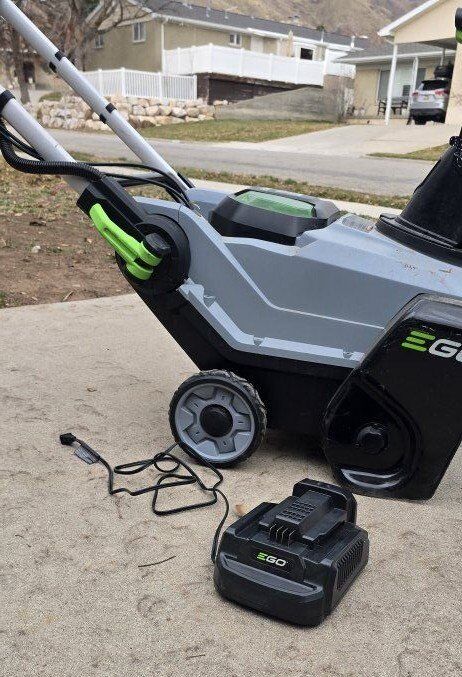 The blower has been lightly used for 3 years and works great. It clears driveways and walkways with ease. The blower and batteries retail for $700 new.