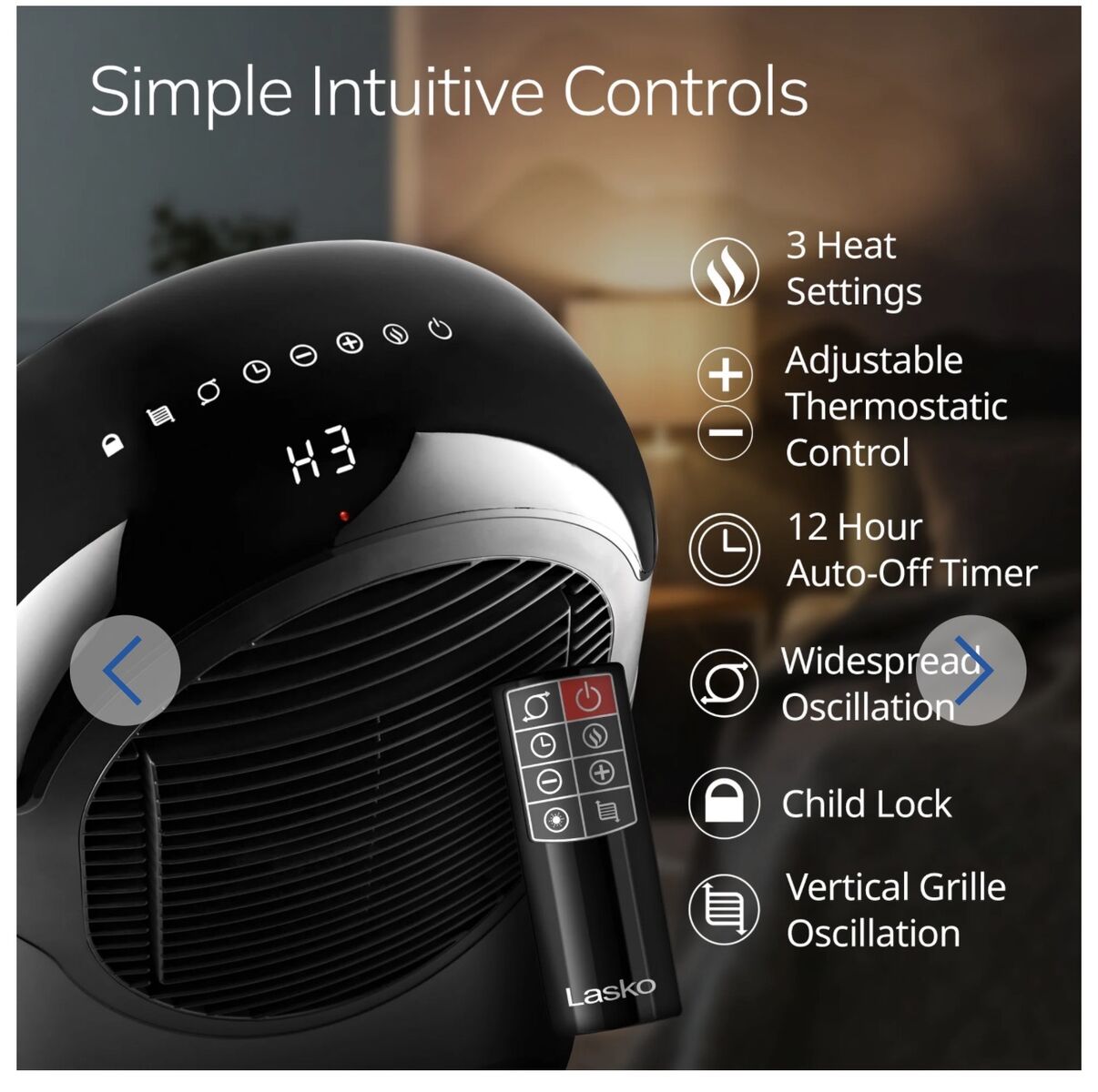 Venmo27" Motion X Console Heater – your ultimate solution for full room warmth and comfort. This electric space heater features widespread oscillation and 20-degree vertical grill oscillation, ensuring every nook and cranny of your space is covered. Efficiency meets innovation with the front air intake, drawing in cool air and dispersing warm air from the top, swiftly transforming your environment into a cozy haven. Operate the heater effortlessly from a distance with the remote control, putting comfort at your fingertips. Say goodbye to sleep disturbances with the display snooze feature, turning off display lights for a peaceful night's rest. Safeguard your little ones with the Child Lock, providing peace of mind as it locks in the heater settings once engaged. Take control of your comfort with electronic controls, offering 3 heat speeds, an auto-off timer (up to 12 hours), and an adjustable automatic thermostat. The digital display makes operation a breeze, putting customization at your fingertips. Effortlessly warm larger rooms like bedrooms, living rooms, kitchens, and offices with this powerful heater