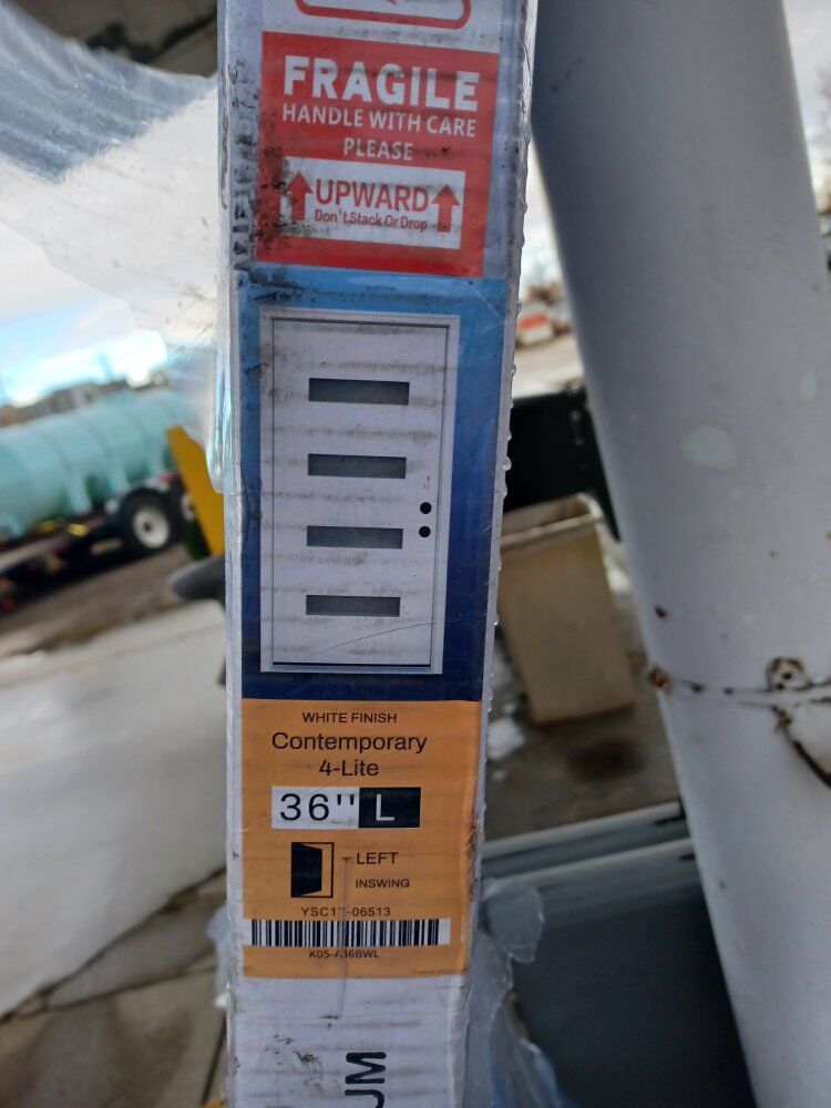 36 inch by 80 in water wave smooth white left hand in swing 4 light rain fiberglass prehung front door brand new any questions please message me