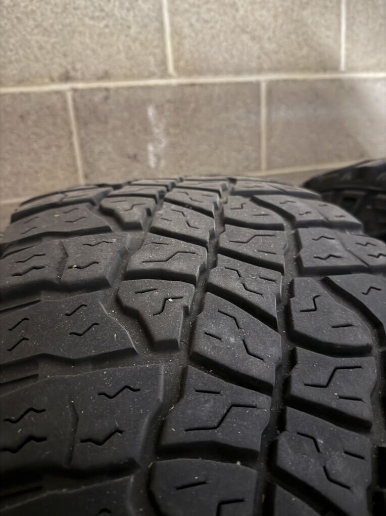 Perfect condition fuel shok wheels -12 offset and goodyear wrangler territory AT 325/65R18 tires, good life left. Pictures are just dusty. No Trades and will not separate wheels and tires